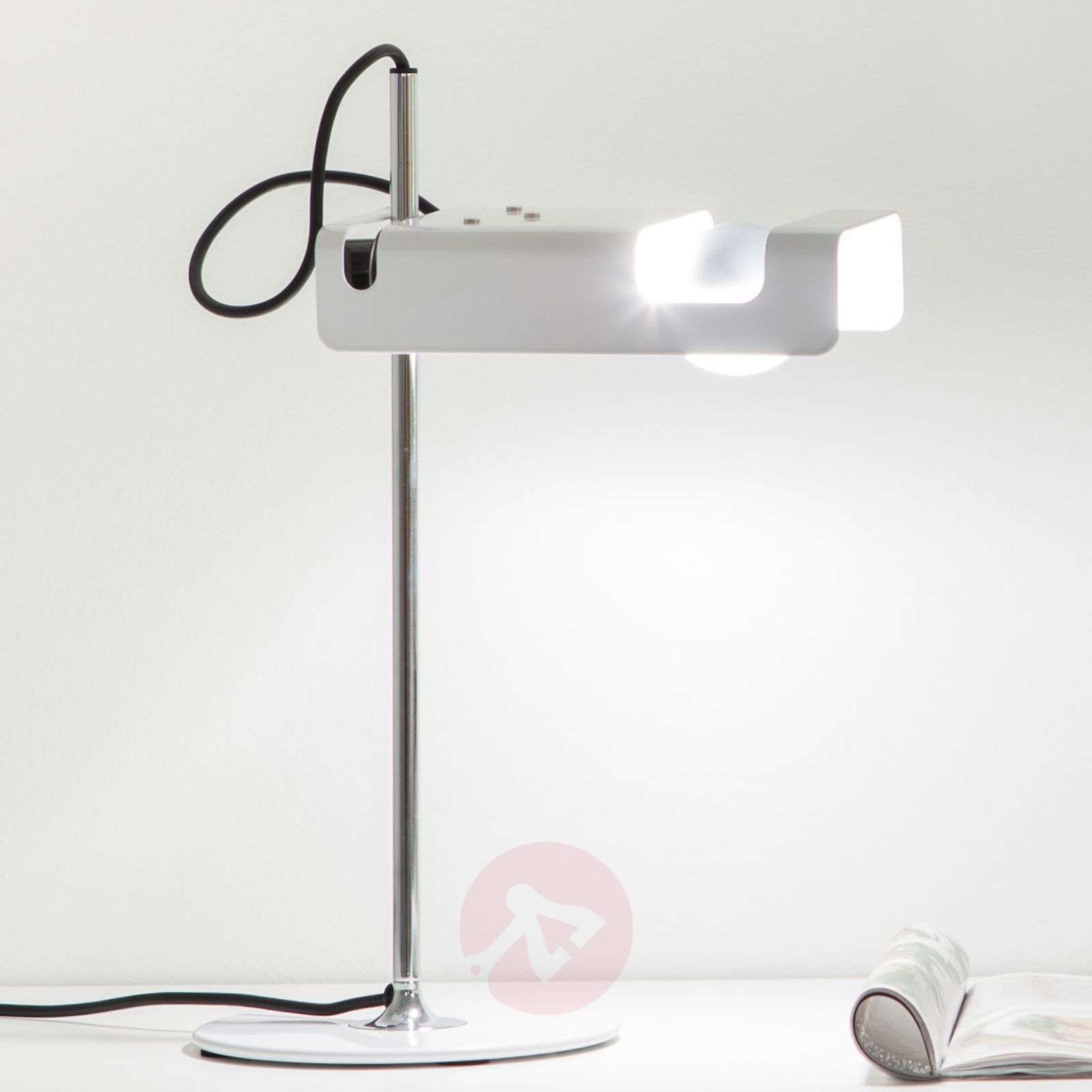 Lampa stołowa SPIDER o wyjątkowym designie to istny klasyk! SPIDER została zaprojektowana w 1965 roku przez Joe Colombo jako lampa z poziomym kloszem. Aluminiowy reflektor jest regulowany pod względem wysokości za pomocą przegubu z tworzywa sztucznego, dzięki czemu możliwa jest zmiana kąta świecenia światła. Wspaniałym kontrastem jest tu wąska podstawa z błyszczącego chromowanego metalu. Lampa SPIDER otrzymała w 1967 roku nagrodę Compasso d'Oro i jest częścią stałych wystaw w Muzeum Triennale w Mediolanie, Filadelfijskim Muzeum Sztuki, Muzeum Sztuki w Düsseldorfie oraz muzeum Die Neue Sammlung w Monachium. Klasa efektywności energetycznej: E