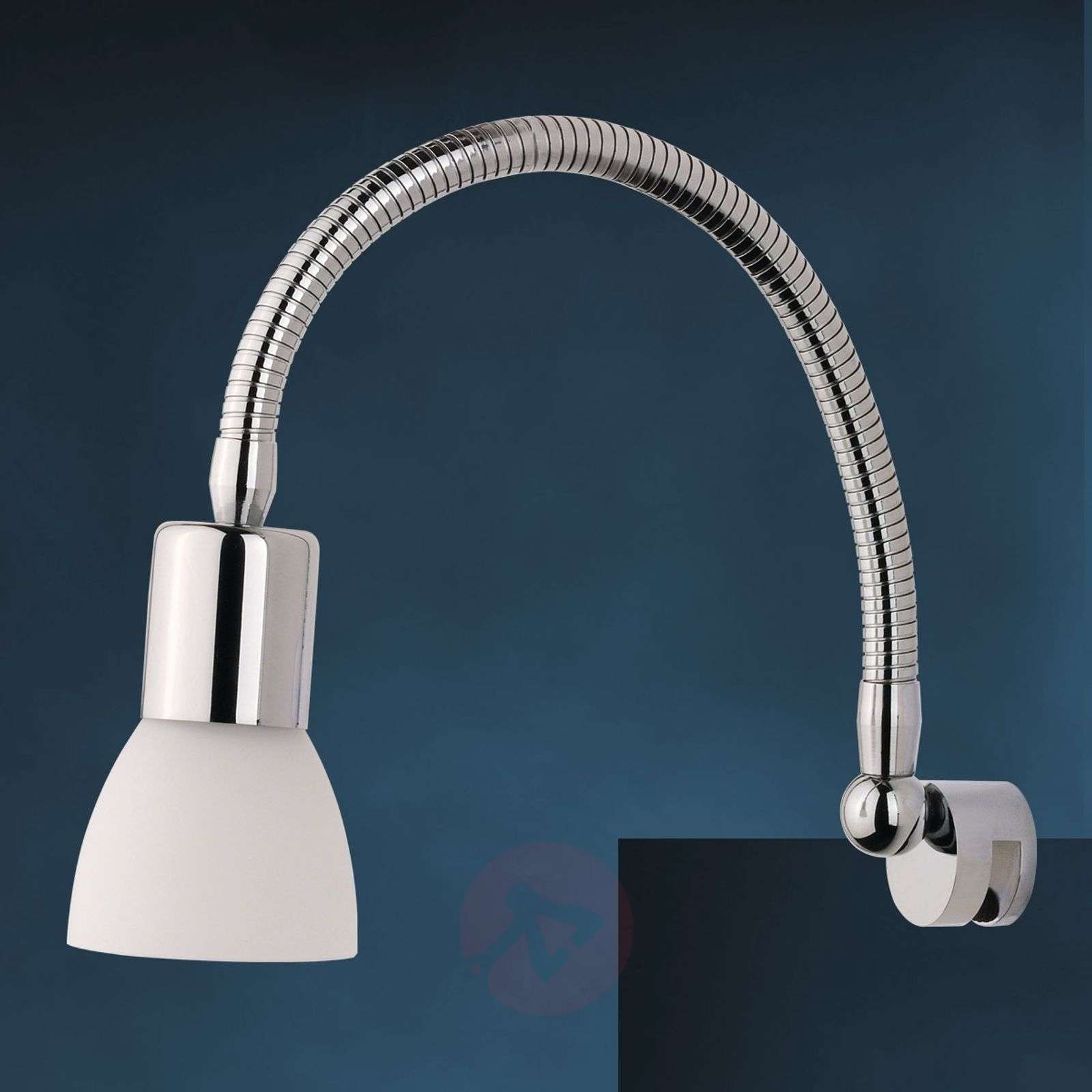 Eleganckie oświetlenie luster JENNY z elastycznym ramieniem Piękne oświetlenie luster JENNY wystarczy zamontować na lustrze, aby uzyskać ciepłe, nieoślepiające oświetlenie w łazience. Wykonane z chromowanego metalu, długie ramię lampy, można wyginać we wszystkich kierunkach, dostosowując do własnych potrzeb. Reflektor jest osłonięty kloszem z satynowanego szkła, co pozwala na uzyskanie bardzo miękkiego oświetlenia. Klasa efektywności energetycznej: A++
