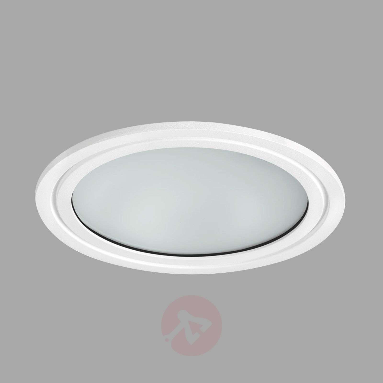 Prettus PRO – spot wpuszczany LED z polerowanym odbłyśnikiem i opalową osłoną Reflektor wpuszczany LED Prettus PRO zapewnia równomierne i nieoślepiające oświetlenie, gdyż wbudowane diody LED są umieszczone w spocie za opalową osłoną. Biały spot wpuszczany LED (RAL 9003) może być stosowany w wielu obszarach komercyjnych i prywatnych, na przykład w biurach, salach konferencyjnych, sklepach, korytarzach itp., a dzięki wysokiemu stopniowi ochrony także w pomieszczeniach o podwyższonej wilgotności. Można go montować w sufitach o grubości od 0,8 do 4,2 cm. Właściwości: - stopień ochrony IP54 – ochrona przed pyłem i strumieniem wody - obramowanie z odlewanego ciśnieniowo aluminium, pomalowane na biało (RAL 9003) - polerowany odbłyśnik z aluminium, opalowa osłona z PMMA - do sufitów o grubości od 0,8 do 42 mm - szeroki kąt świecenia 73° - w zestawie elektroniczny ogranicznik prądu (bez możliwości ściemniania) - możliwość stosowania w temperaturze otoczenia od -20 do +35°C - żywotność L80/B10: 50 000 godzin (ta. 25°C) - brak promieniowania UV i IR w wiązce światła Klasa efektywności energetycznej: A+