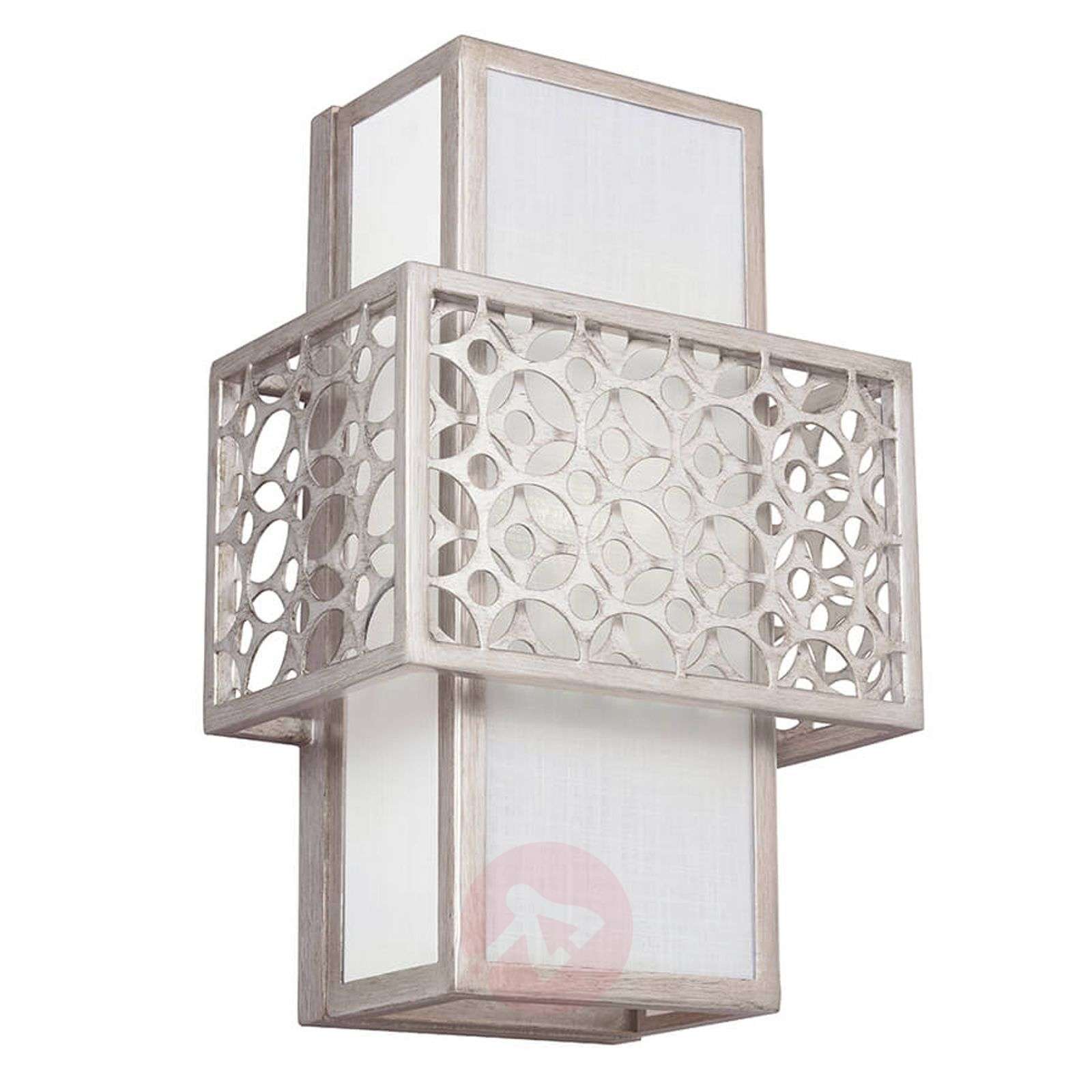 Elegancko zdobiona lampa ścienna Kenney Kanciasta lampa ścienna Kenney ma design nawiązujący do eleganckiego stylu z lat 50 i 60, a tym samym stanowi lampę, która spełnia najwyższe wymagania pod względem wyglądu i funkcjonalności. Metalowa rama i element dekoracyjny opatrzone zostały wykończeniem sunrise silver, które w efekcie jest tak jasne, jak samo światło. Za lnianym kloszem znajduje się źródło światła – tu zastosowano żarówkę E27. Zapewnia ona delikatne oświetlenie otoczenia, a przy tym efektownie wydobywa wzór wytłoczony w metalu. Klasa efektywności energetycznej: A++