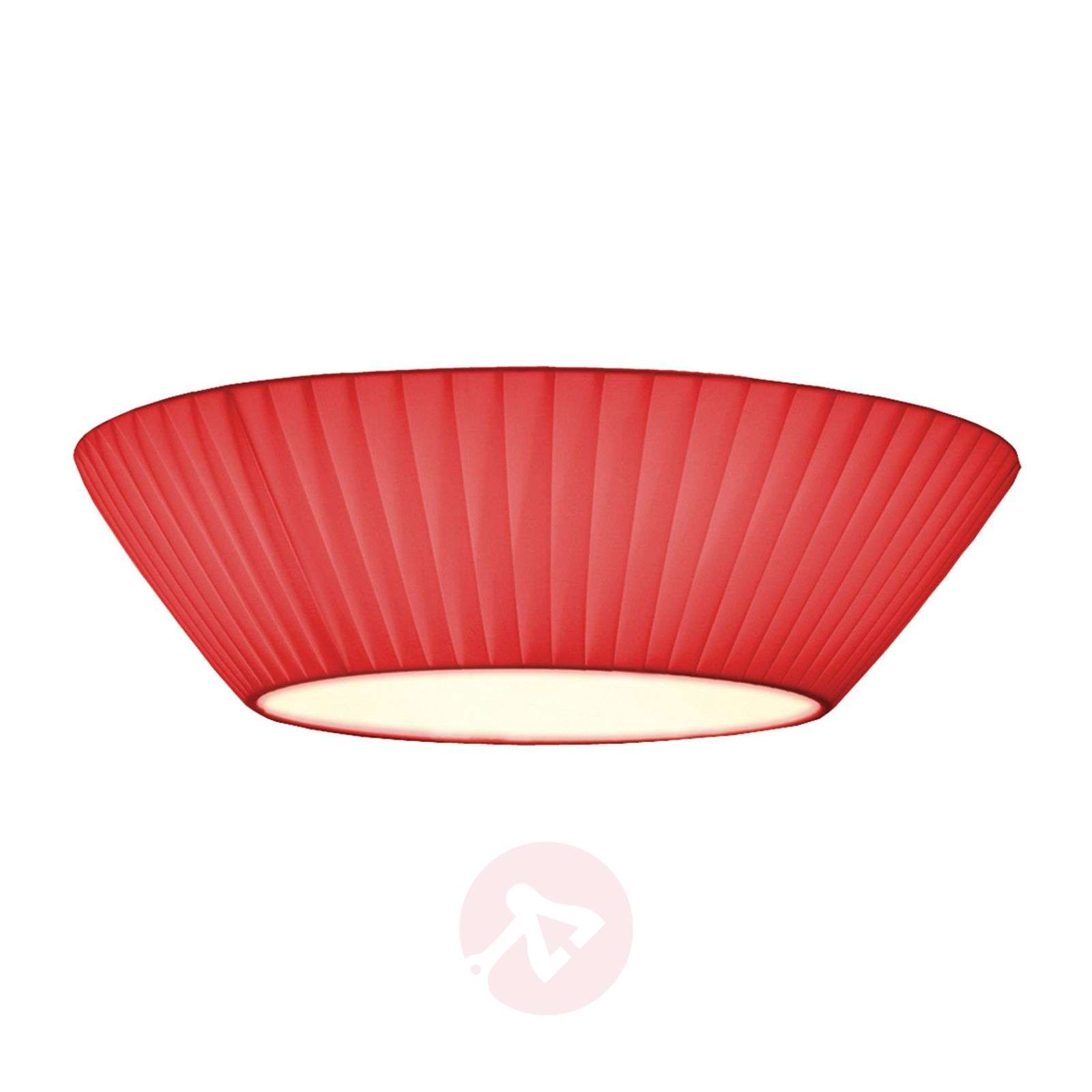Stylowa lampa sufitowa Emma z abażurem z plisowanej tkaniny, dostępna w 5 kolorach Nowoczesna lampa sufitowa Emma jest źródłem wyjątkowo nastrojowego i zrównoważonego oświetlenia, które uszlachetnia abażur. Ciekawa tkanina abażuru została kunsztownie ułożona w fałdy, dlatego posiada drobno pofałdowaną, stylową powierzchnię. Bez względu na oświetlane miejsce lampa sufitowa Emma urzeka zrównoważonym i bardzo ciepłym światłem. Efekt świetlny tworzony przez lampę Emma różni się w zależności od wybranego koloru, dlatego można go indywidualnie kształtować. Lampa sufitowa jest dostępna z abażurem w kolorze beżowym, pomarańczowym, czerwonym, białym i bordo. Klasa efektywności energetycznej: A++