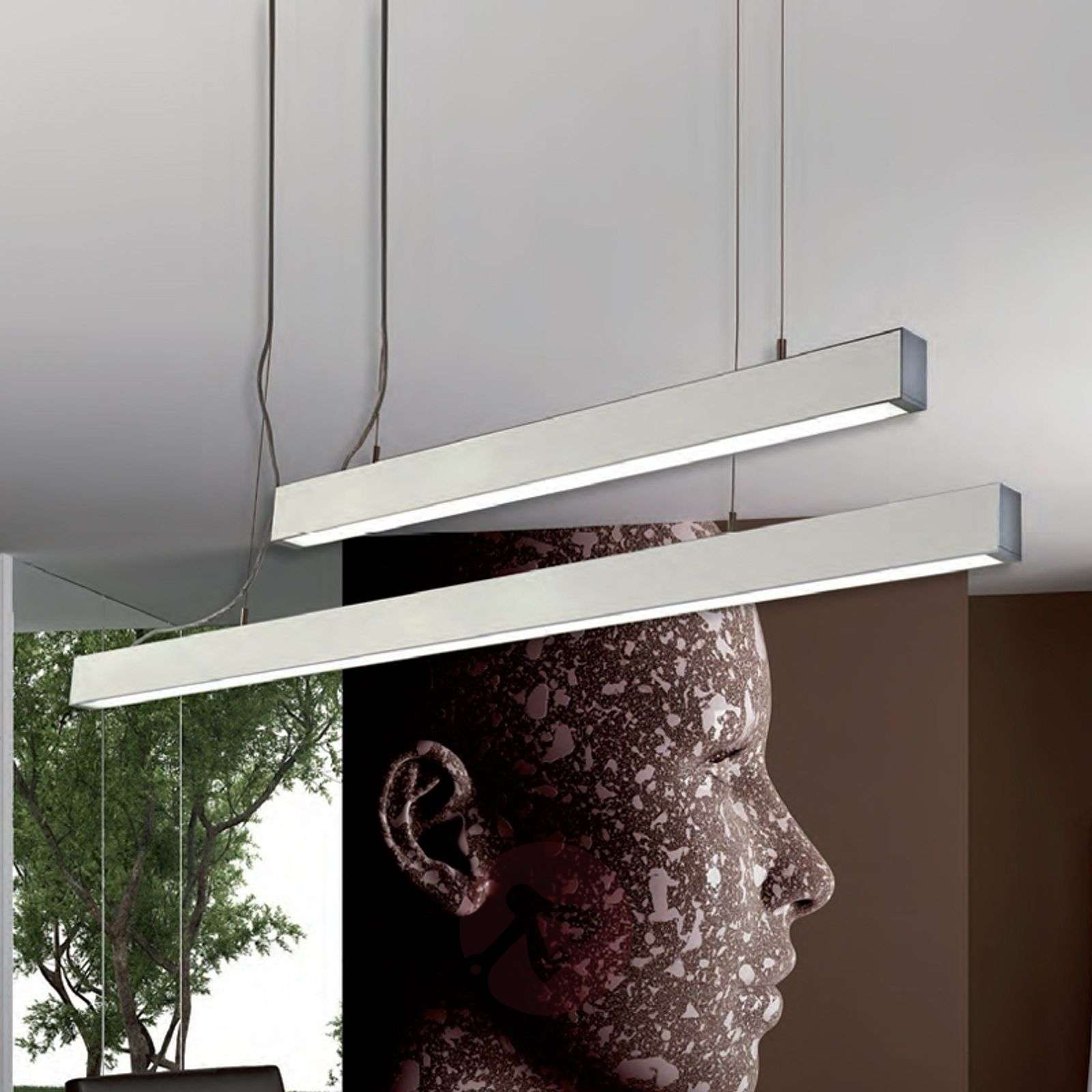 Efektywna lampa wisząca SIN Lampa wisząca SIN wyróżnia się prostoliniową formą, która zyskuje indywidualny charakter dzięki wyjątkowej strukturze powierzchni aluminium. Ma 4 cm szerokości, 7 cm wysokości, a jej zawieszenie można wydłużyć do 150 cm. Dyfuzor z tworzywa sztucznego, emitujący światło o barwie uniwersalnej bieli i temperaturze 4 000 K doskonale wtapia się w pomieszczenie. Klasa efektywności energetycznej: A++