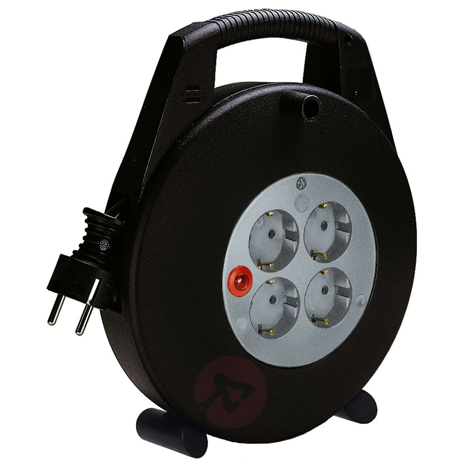 VARIO LINE - cztery gniazdka w wytrzymałej oprawie - 15 m kabla Obudowa tego estetycznego przedłużacza bębnowego VARIO LINE wykonana została z odpornego na uderzenia specjalnego tworzywa sztucznego. Stabilna dwunożna podpora gwarntuje pewne ustawienie bębna, a ergonomiczny uchwyt wygodę. Zabezpieczenie przed przegrzaniem. Cztery gniazda typu Schuko wyposażone są w zabezpieczenie przed dziećmi. Trzy lata gwarancji producenta. Made in Germany.