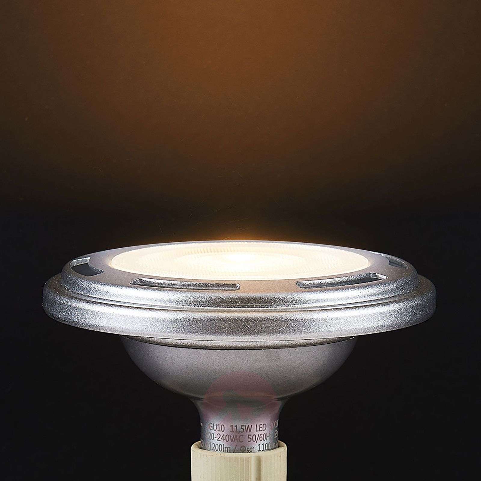 Szary, ściemniany reflektor LED GU10 ES111 11,5 W, ciepła biel Ciepłobiałe światło tego reflektora LED GU10 ES111 jest emitowane pod kątem 25°. Dzięki temu reflektor doskonale nadaje się do zapewniania oświetlenia akcentującego i może być stosowany jako zamiennik konwencjonalnego reflektora halogenowego o poborze mocy 100 W, co sprawia, że można zaoszczędzić ogromną ilość energii. Dane techniczne / właściwości: - dobre oddawanie barw Ra 80 - ciepłobiałe oświetlenie (3 000 K) - możliwość ściemniania (ściemniacz z trybem odcinania fazy) - kąt padania światła 25° - długi okres użytkowania (25 000 godzin) - klasa efektywności energetycznej A+ Klasa efektywności energetycznej: A+