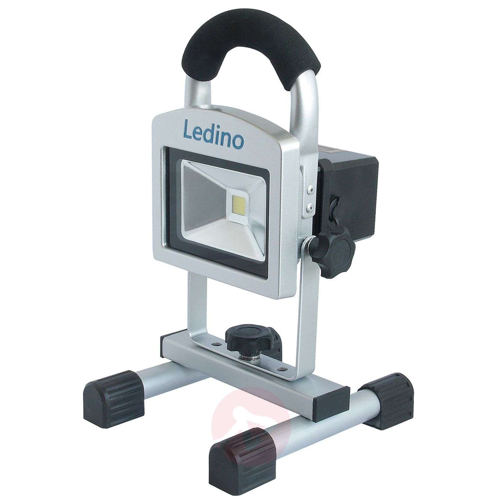Uniwersalny reflektor stojący LED Köpenick 102 ze stopami magnetycznymi Dzięki wytrzymałej obudowie z odlewanego ciśnieniowo aluminium i wysokiemu stopniowi ochrony IP54, ten zasilany akumulatorem reflektor jest w pełni przystosowany do użytku na zewnątrz. Dopuszczalna temperatura otoczenia wynosi od -20° do 50 °C. Akumulator litowo-jonowy 2,2 Ah jest przeznaczony do około 500 cykli ładowania. Czas ładowania wynosi 3,4 godziny. Natężenie światła można elastycznie regulować w czterech stopniach. Pełne naładowanie akumulatora wystarcza przy 100% natężeniu światła na ok. 2,4 godzin pracy, przy 50% na 4,5 godziny i przy 25% na pełne 9 godzin. Elementy oświetlenia LED zapewniają jasne, białe światło w segmencie temperatury zimnego białego światła. Akumulatorowy reflektor Köpenick 102 posiada dwie specjalne cechy wyposażenia. Z jednej strony lampa ta może być wykorzystywana jako światło błyskowe. Z drugiej strony, model jest wyposażony w magnetyczne stopy i dlatego może być mocowany do pionowych metalowych powierzchni. Wielofunkcyjny reflektor stojący Köpenick 102, który dzięki zasilaniu akumulatorowemu nie jest uzależniony od istniejącego gniazda wtykowego, pozwala doskonale oświetlić na przykład mniejsze place budowy lub domowy warsztat. Zasilacz i adapter samochodowy wchodzą w zakres dostawy. Klasa efektywności energetycznej: A+