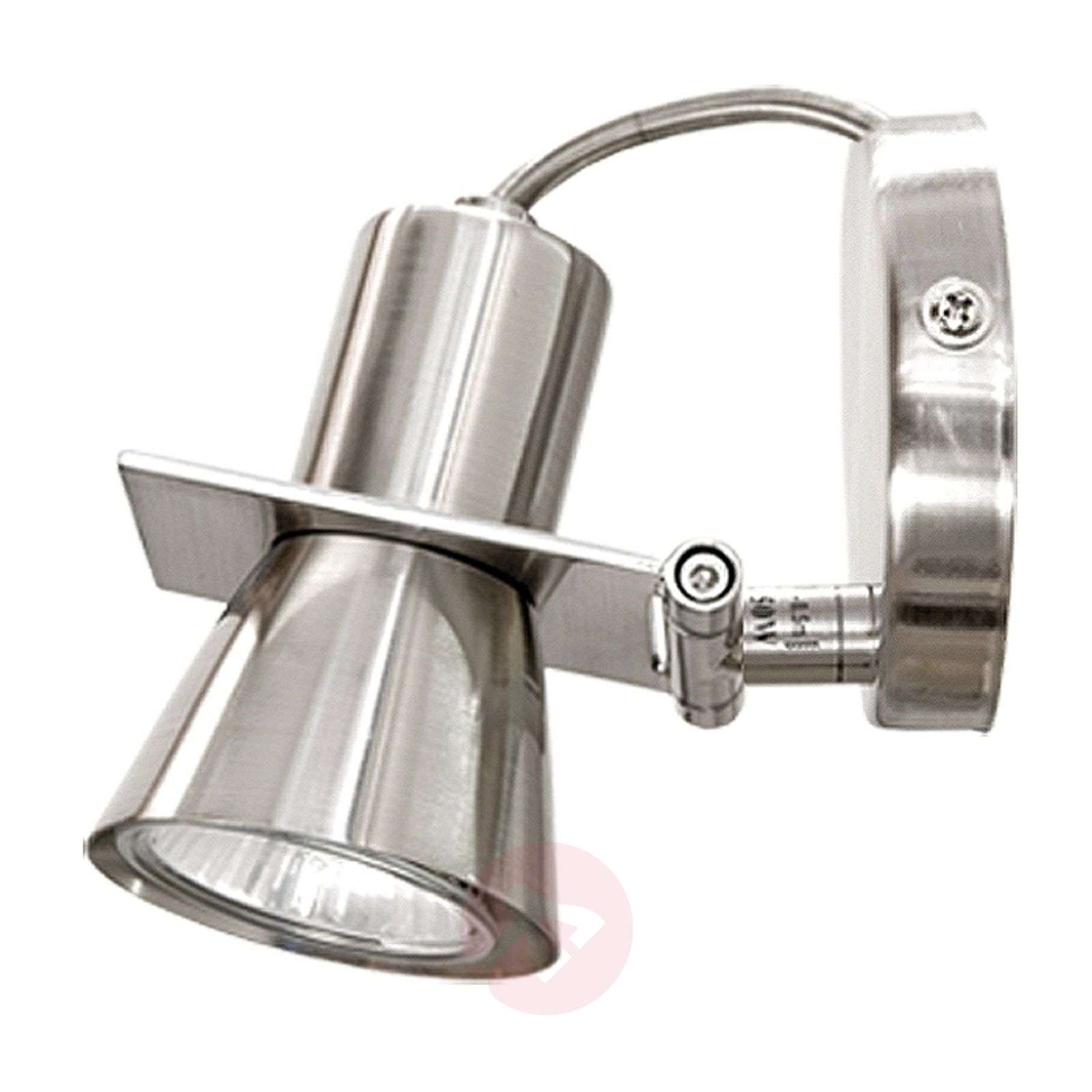 Regulowana lampa ścienna ROBO w kolorze niklu satynowanego Lampa ścienna ROBO doskonale sprawdza się jako akcent świetlny w pomieszczeniach prywatnych, jak również w funkcji oświetlenia przedmiotów w pomieszczeniach komercyjnych. Lampa wykonana została z metalu w ciekawym kolorze satynowanego niklu; reflektor można ustawić w dowolnym kierunku, ponieważ posiada on możliwość obracania i odchylania. W komplecie znajduje się żarówka. Klasa efektywności energetycznej: D