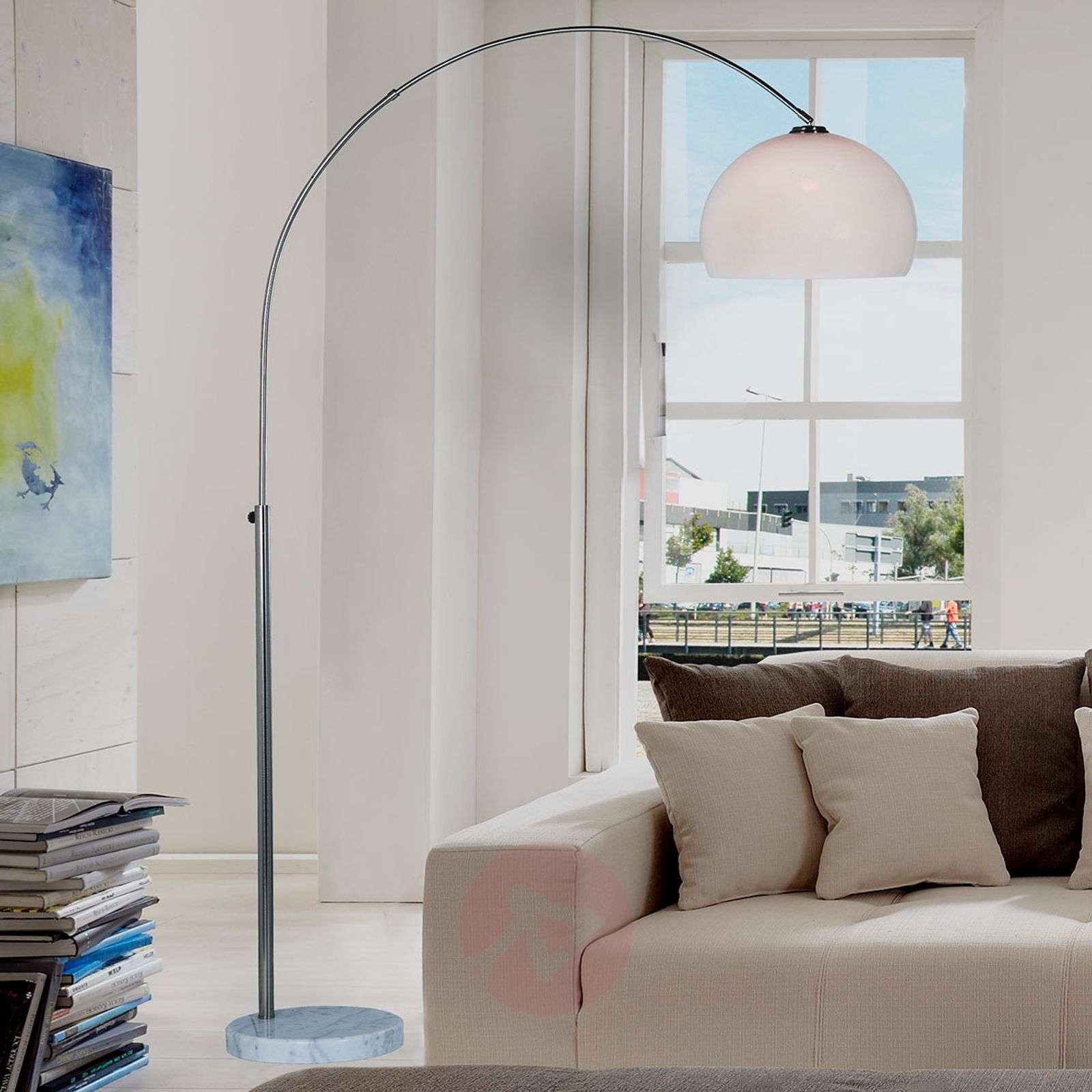 ARIAN – lampa stojąca z regulowanym łukiem Lampa stojąca ARIAN jest wyposażona w łuk z regulacją wysokości, na którym umieszczony jest biały klosz z tworzywa sztucznego w kształcie półkuli. Stabilność zapewnia podstawa z białego, polerowanego marmuru. Lampa stojąca ARIAN obsługiwana za pomocą komfortowego przełącznika nożnego na przewodzie doprowadzającym. Oświetlenie, które sprawdzi się w wielu wnętrzach. Klasa efektywności energetycznej: A++