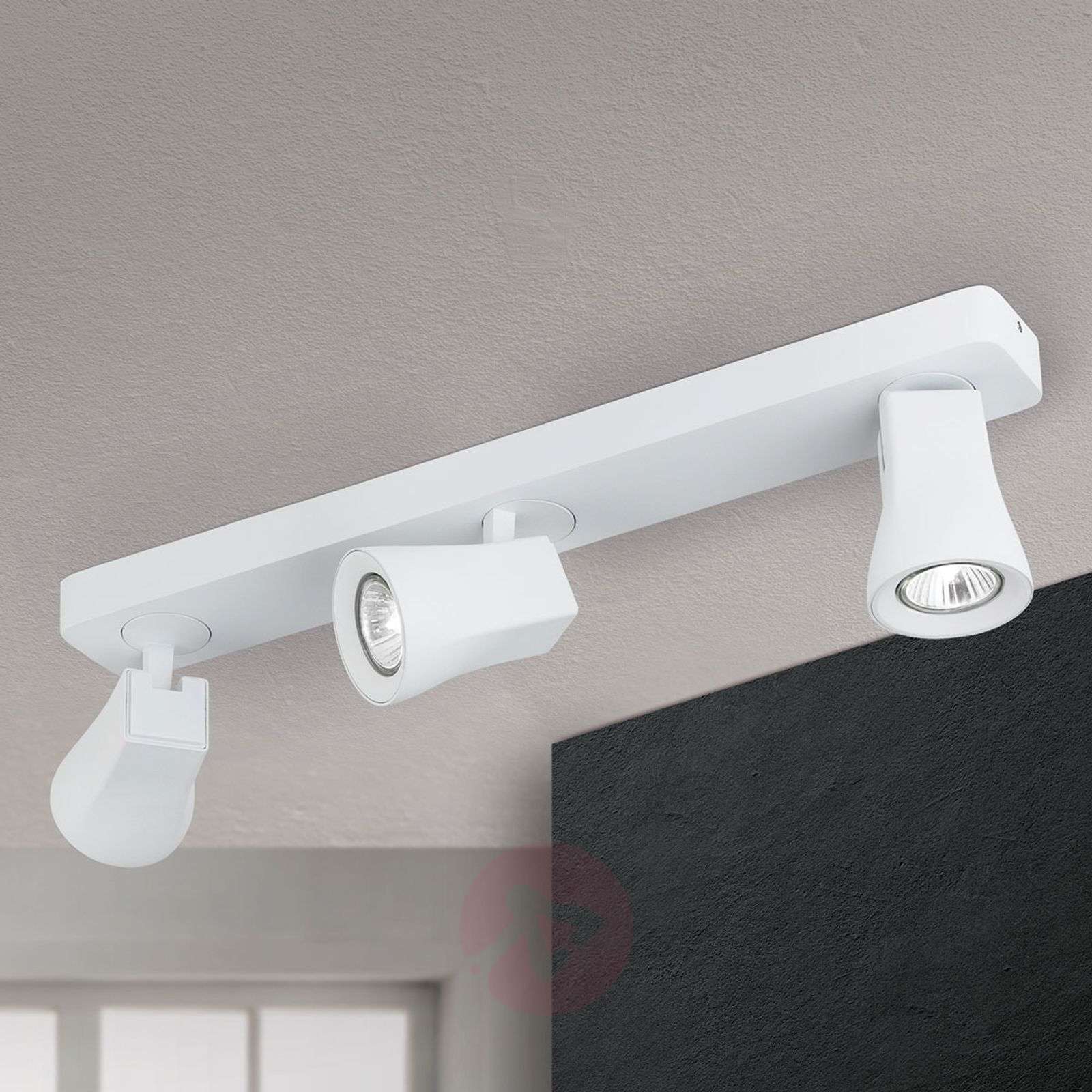 Obrotowy i wychylny reflektor punktowy natynkowy Aurora Kierunek świecenia reflektora natynkowego Aurora, który nadaje się zarówno do montażu na suficie, jak i na ścianie, można zmienić poprzez obrót i wychylenie głowicy lampy. Dzięki nowoczesnemu wzornictwu w neutralnym kolorze białym, pasuje do wszystkich kolorów mieszkania i wielu stylów wyposażenia wnętrz. Wyposażony w oprawę GU10: można stosować konwencjonalne lampy halogenowe lub energooszczędne żarówki LED z cokołem GU10. Klasa efektywności energetycznej: A++