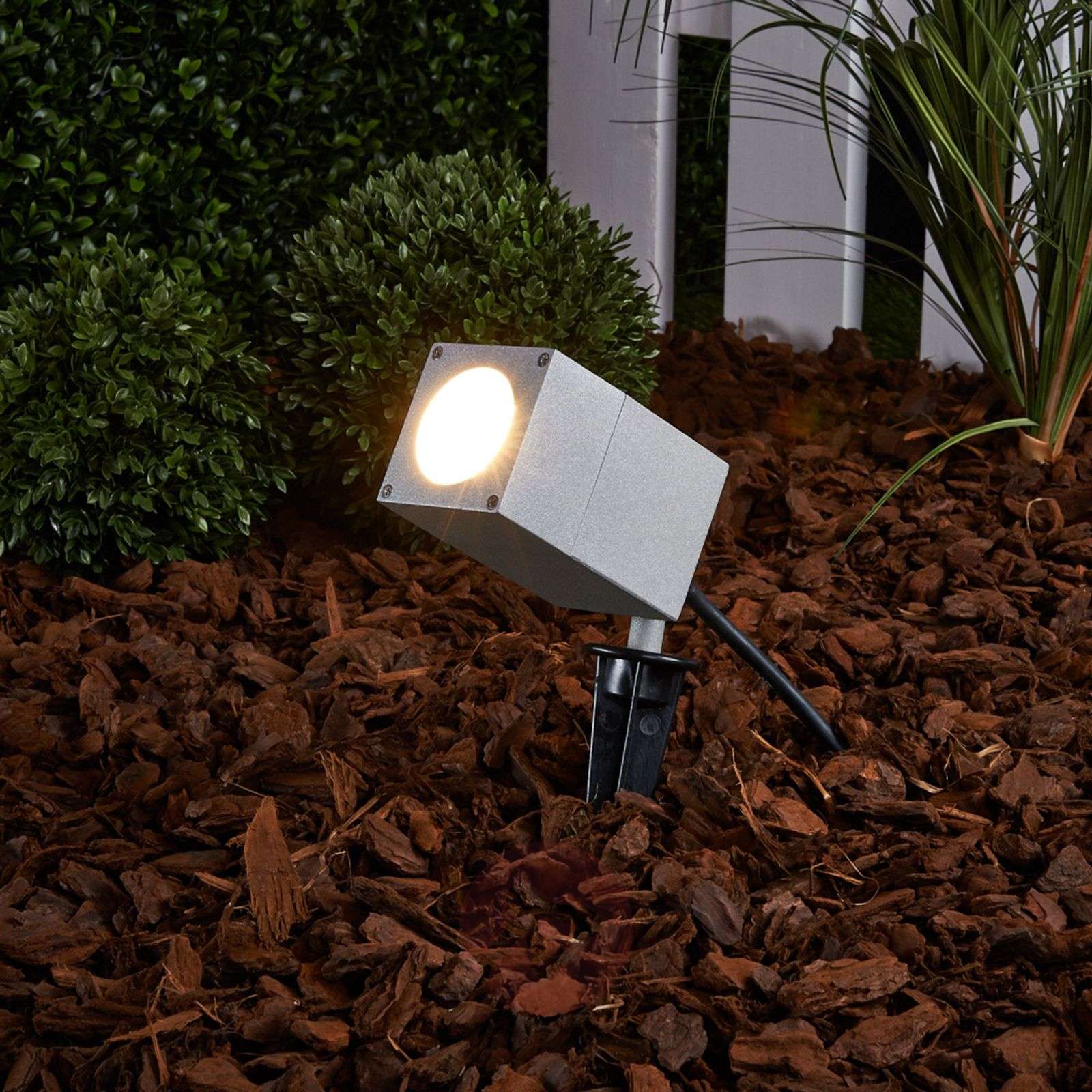 Reflektor zewnętrzny Icaro o sześciennym wzorze z grotem ziemnym Tego reflektora zewnętrznego z serii Icaro można do wyboru używać z energooszczędnymi żarówkami LED lub halogenowymi. Reflektor zewnętrzny odznacza się bardzo eleganckim i nowoczesnym wyglądem oraz sześcienną, ograniczoną budową. Obudowę wykonano z aluminium i uzupełniono o przezroczyste, hartowane szkło. Szara powierzchnia wpływa na subtelność lampy. Lampa Icaro jest idealnym uzupełnieniem i możliwością oświetlenia nowoczesnego otoczenia i przyczynia się do odpowiedniej emisji światła w obszarach zewnętrznych. Reflektor można dowolnie ustawiać w zależności od indywidualnych potrzeb. Klasa efektywności energetycznej: A++