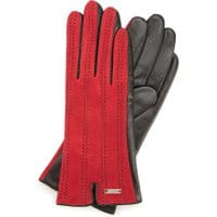 Ocieplane rękawiczki damskieCzerwono-czarne rękawiczki damskie uszyte z połączenia najlepszej jakości skóry licowej oraz zamszowej. Wyrazista stylistyka podkreślona zdecydowaną kolorystyką przypadnie do gustu kobietom, które cenią sobie w modzie nutkę ekstrawagancji. To najwyższa jakość i unikatowe wzornictwo, które nadadzą wyjątkowy charakter stylizacjom na jesienno-zimowy sezon. wykonane z najwyższej jakości skóry owczej; wnętrze ocieplane polaremzapewnia dobrą ochronę przed wiatrem i mrozem. Rozmiar V S M L XL Długość (cm) 20,5 21 21,5 22 22,5 Szerokość (cm) 7,5 8 8,5 9 9,5 Długość śr. palca (cm) 7 7,5 8 8,5 9
