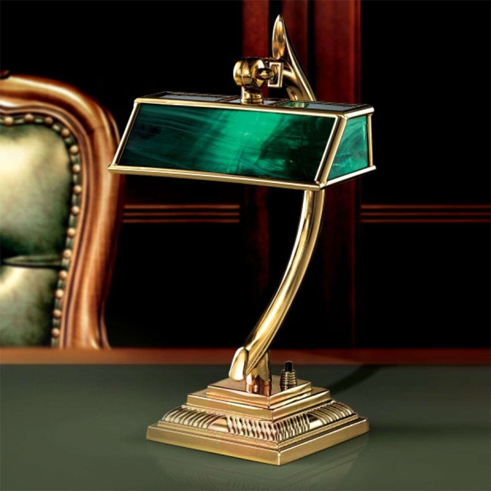 Lampa stołowa ANTIKO o ładnym kształcie i złoconej powierzchni Lampa stołowa ANTIKO dzięki reprezentacyjnemu wyglądowi będzie się świetnie prezentowała na klasycznych biurkach, lecz również do nowocześnie urządzonych wnętrz wniesie kontrastowy akcent. Lampa ANTIKO z zielonym kloszem oraz błyszczącymi, złoconymi elementami metalowymi będzie bez wątpienia uatrakcyjnieniem pomieszczenia. Włącznik jest umieszczony na podstawie. Klasa efektywności energetycznej: A++