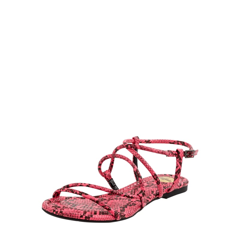Sandały damskie Buffalo , Stylizowane na skórę węża , Skrzyżowane paski , Pasek ze sprzączką , Gumowa podeszwa , Wyściełana wkładka , Wysokość podeszwy w rozmiarze 39: 1 cm