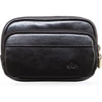 Męska saszetka-etui z kolekcjiItaly. Czarna saszetka na pasek pomożezachować porządek niezbędnych akcesoriów. Tylna ścianka saszetki wyposażona jest w specjalny uchwyt, który umożliwia nałożenie saszetki na pasek od spodni. Model z szykownym przeszyciem na froncie zapewni męskim kompletom profesjonalny wygląd. wykonane z najwyższej jakości skóry licowej; model odporny na zarysowania; posiada zdobienie w postaci herbu WITTCHEN wytłoczonego w skórze; doskonale sprawdzi się również jako prezent – zapakowana jest w aksamitny woreczek z logo WITTCHEN; wymiary: 11 cm x 16,5 cm; Model posiada: 2 komoryzamykane na suwak; wewnątrz 3 otwarte kieszenie; dodatkowo z przodu kieszeń zmykana na suwak.