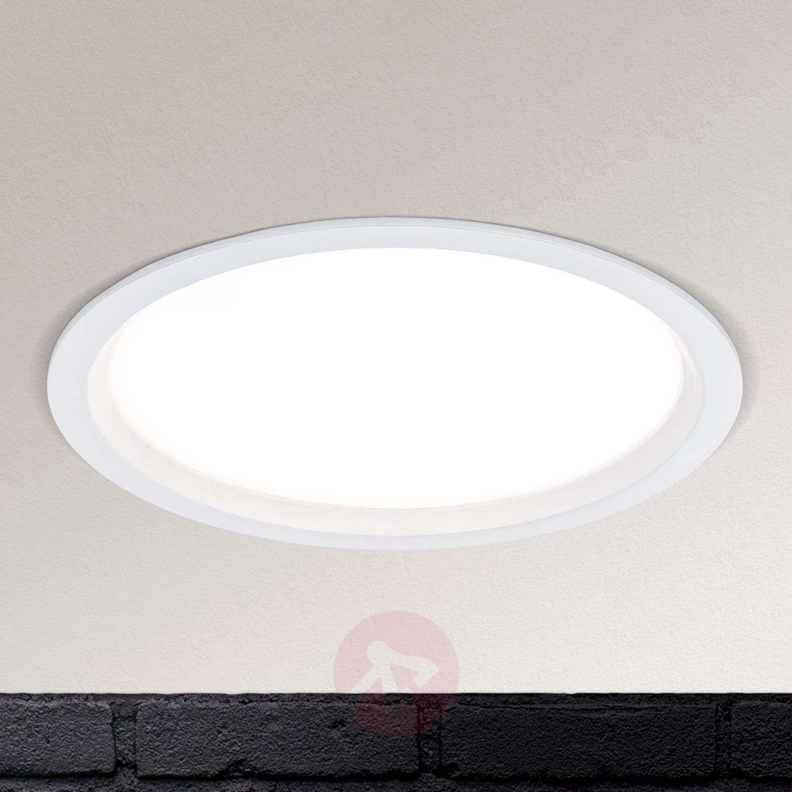 Oprawa wpuszczana LED Spock ściemniana za pomocą instalacji domowej Oprawy wpuszczane są stosowane w wielu strefach mieszkalnych i wzbogacają każde pomieszczenie o powierzchniowe oświetlenie. Oprawa wpuszczana Spock charakteryzuje się niewielką głębokością montażu i wysoka kompatybilnością z warunkami lokalnymi. Jednostka oświetleniowa LED, zbudowana w technologii panelowej, emituje miękkie światło o barwie ciepłej bieli dla zapewnienia przytulnej atmosfery. Natężenie światła okrągłej oprawy wpuszczanej Spock można również regulować za pomocą ściemniacza z trybem odcinania fazy. Zastosowanie ochrony przeciwprzepięciowej zalecane jest w przypadku instalacji więcej, niż dwóch spotów wpuszczanych LED. Klasa efektywności energetycznej: A