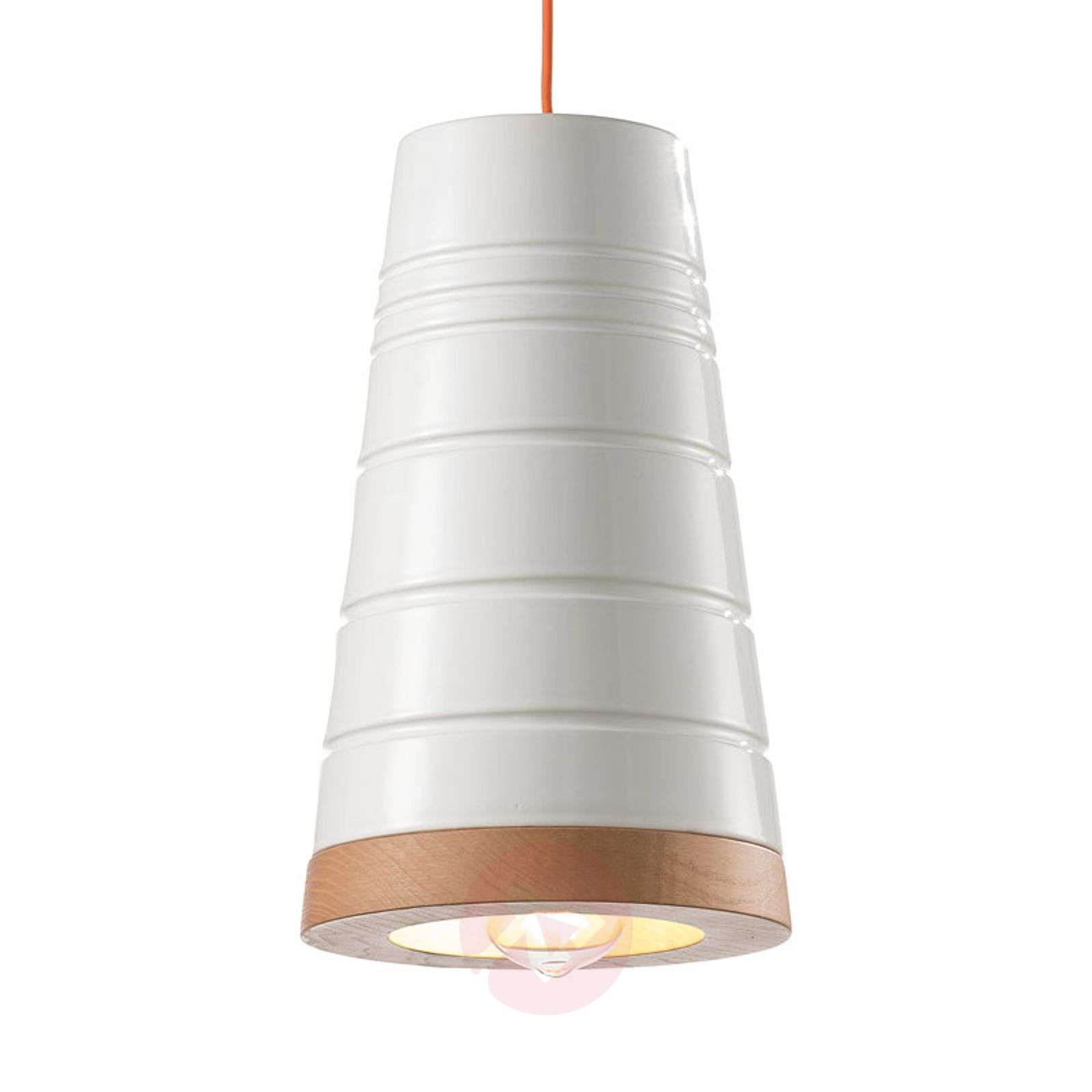 Minimalizm z dopracowanymi szczegółami – lampa wisząca C1785 oparta na modelu skandynawskim Lampa wisząca C1785 łączy w sobie skandynawski design i włoski sposób wytwarzania. Lampa przekonuje doborem materiałów, które są harmonijnie połączone ze sobą i sprawiają, ze powstaje ta właśnie nowoczesna lampa. Klosz wykonany jest z doskonałej jakości ceramiki i ma kilka pierścieniowatych rowków. Przy dolnej krawędzi klosz zamyka się drewnianym pierścieniem z jesionu w kolorze dębu i zapewnia, że światło będzie się równomiernie rozchodzić ku dołowi. Intensywnie pomarańczowy kabel pełniący rolę zawieszenia łączy klosz z rozeta sufitową, która jest również wykonana z ceramiki i wyposażona w dwie śruby. Włoski producent stosuje tradycyjne metody produkcji, które były przekazywane z pokolenia na pokolenie i łączy w ten sposób tradycję z nowoczesnością. Wszystkie produkty tego wytwórcy są „made in Italy”. Klasa efektywności energetycznej: A++