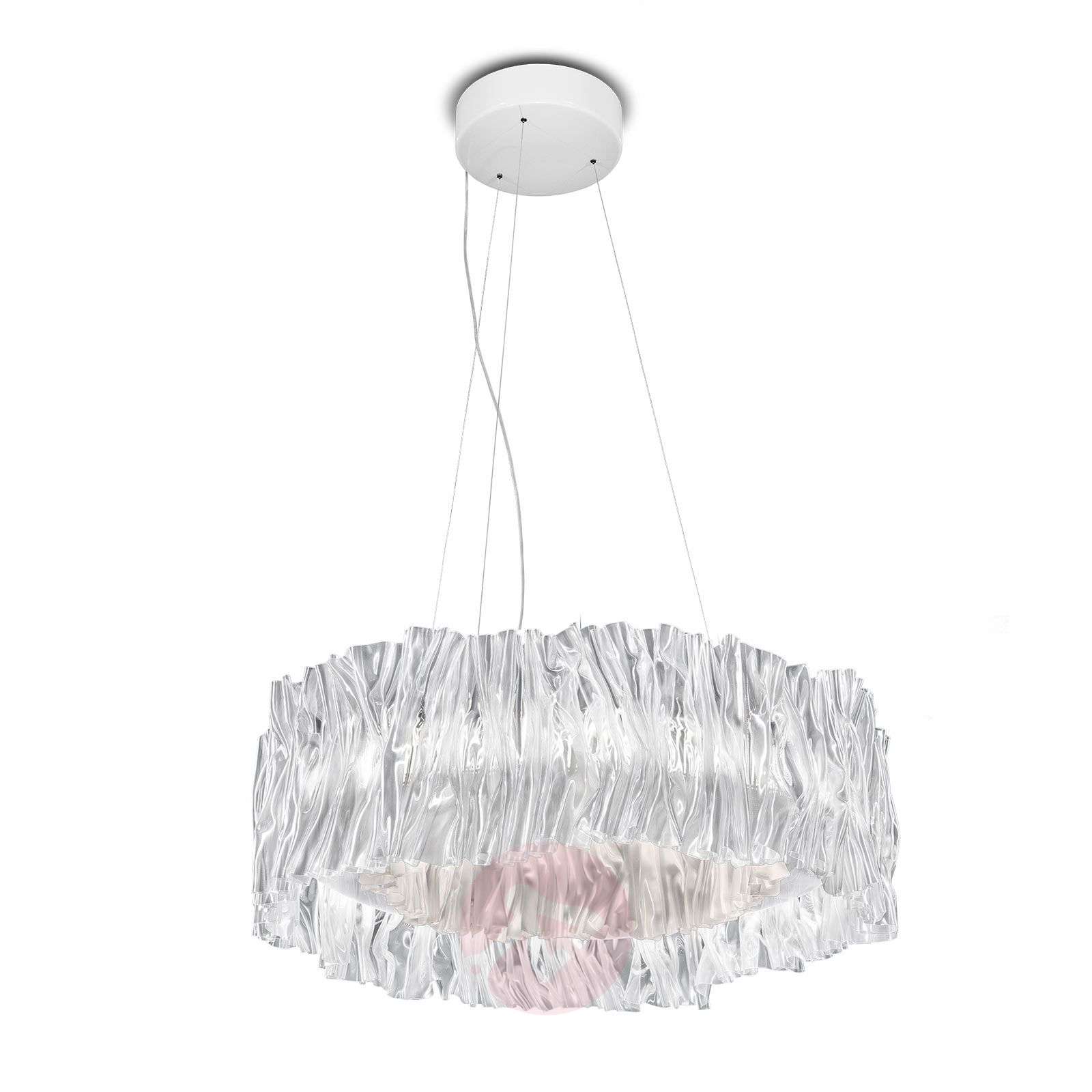 Designerska lampa wisząca Accordéon z plisowanej tkaniny Ta kreacja renomowanego projektanta przemysłowego Marca Sadlera łączy w sobie inspirację, rzemiosło i nowoczesną technologię. Lampa wisząca LED Accordéon przypomina swoim plisowanym materiałem akordeon lub spódnicę tancerki. Ręcznie wykonana lampa o płaskiej cylindrycznej formie podstawowej składa się z wewnętrznej i zewnętrznej przezroczystej warstwy wykonanej ze specjalnego tworzywa sztucznego, przez co światło rozpraszane jest w całym pomieszczeniu. Diody LED świecące w kolorze ciepłej bieli zapewniają swoją wydajnością 5 700 lumenów bogate oświetlenie ogólne. Większe pomieszczenia w prywatnych i publicznych wnętrzach urządzone w wysokim standardzie w szczególności korzystają z blasku i efektu świetlnego lampy wiszącej. Lampa wisząca Accordéon pochodzi z produkcji włoskiego producenta Slamp, który stawia na specjalnie opracowane materiały, takie jak Cristalflex®, Lentiflex® i Opalflex® oraz na współpracę z uznanymi na całym świecie projektantami. - ściemniana: PWM (modulacja szerokości impulsu), 0-10 V lub potencjometr Klasa efektywności energetycznej: A+