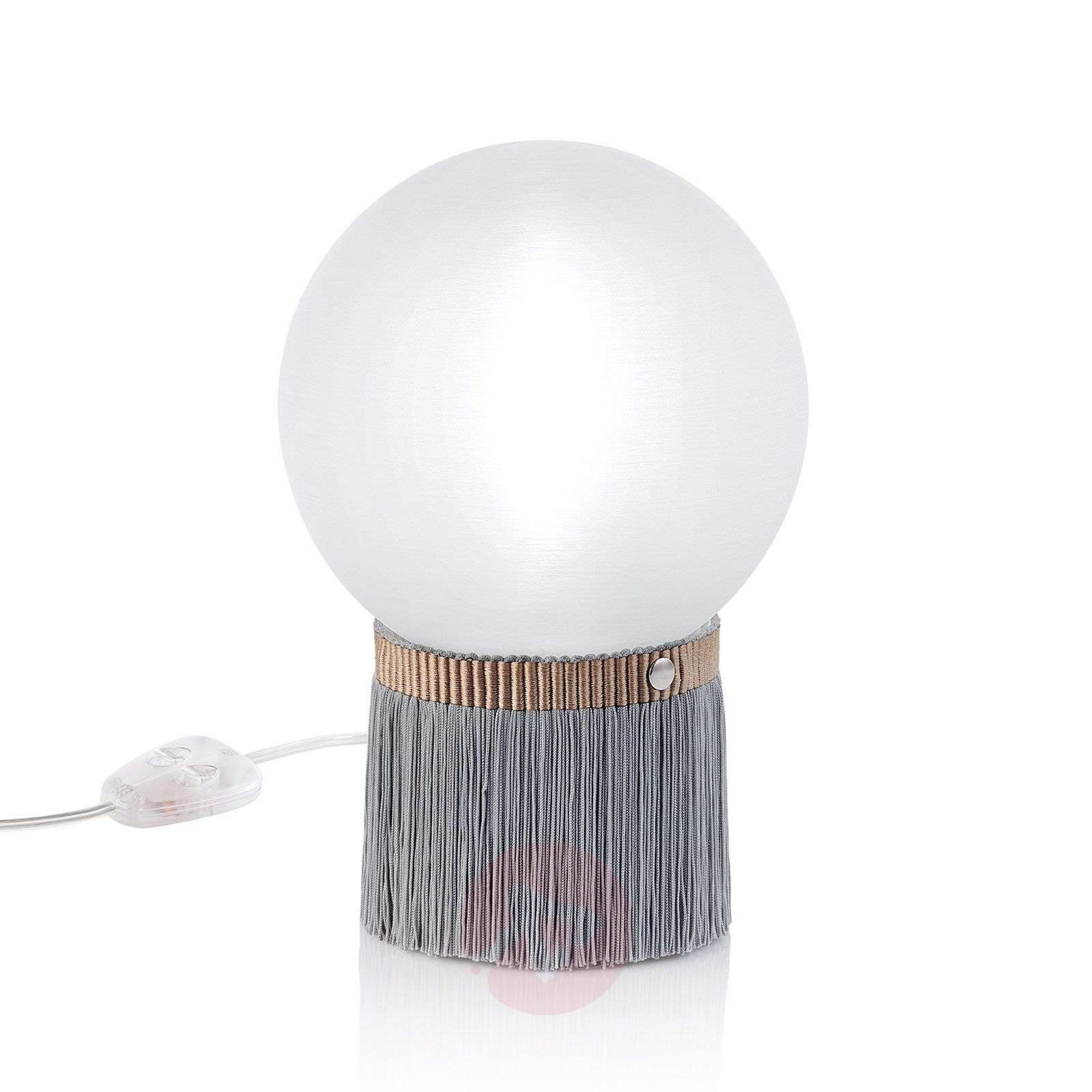 Biała lampa stołowa Atmosfera z cokołem Fringe w kształcie spódnicy Projektantka Lorenza Bozzoli, projektując lampę stołową Atmosfera, zainspirowała się spódnicami w stylu Charleston, które można odnaleźć w cylindrycznej podstawie Fringe z wiszącymi nićmi. Niezwykła kombinacja powstaje w połączeniu z gładkim, matowo-białym kulistym kloszem, który jest równomiernie oświetlony po włączeniu światła i emituje światło na wszystkie strony. Lampa stołowa firmy Slamp łączy w sobie charakterystyczne cechy wyróżniające wyroby włoskiego producenta. Atmosfera jest wykonywana w trakcie starannej, dokładnej pracy ręcznej, emanuje kreatywnością i przyciąga wzrok swoim wzornictwem i efektem świetlnym. Dzięki temu lampa stołowa idealnie nadaje się do wzbogacenia wysokiej jakości wyposażenia wnętrz publicznych i prywatnych jako akcesorium i dodatkowe źródło światła. Klasa efektywności energetycznej: A++