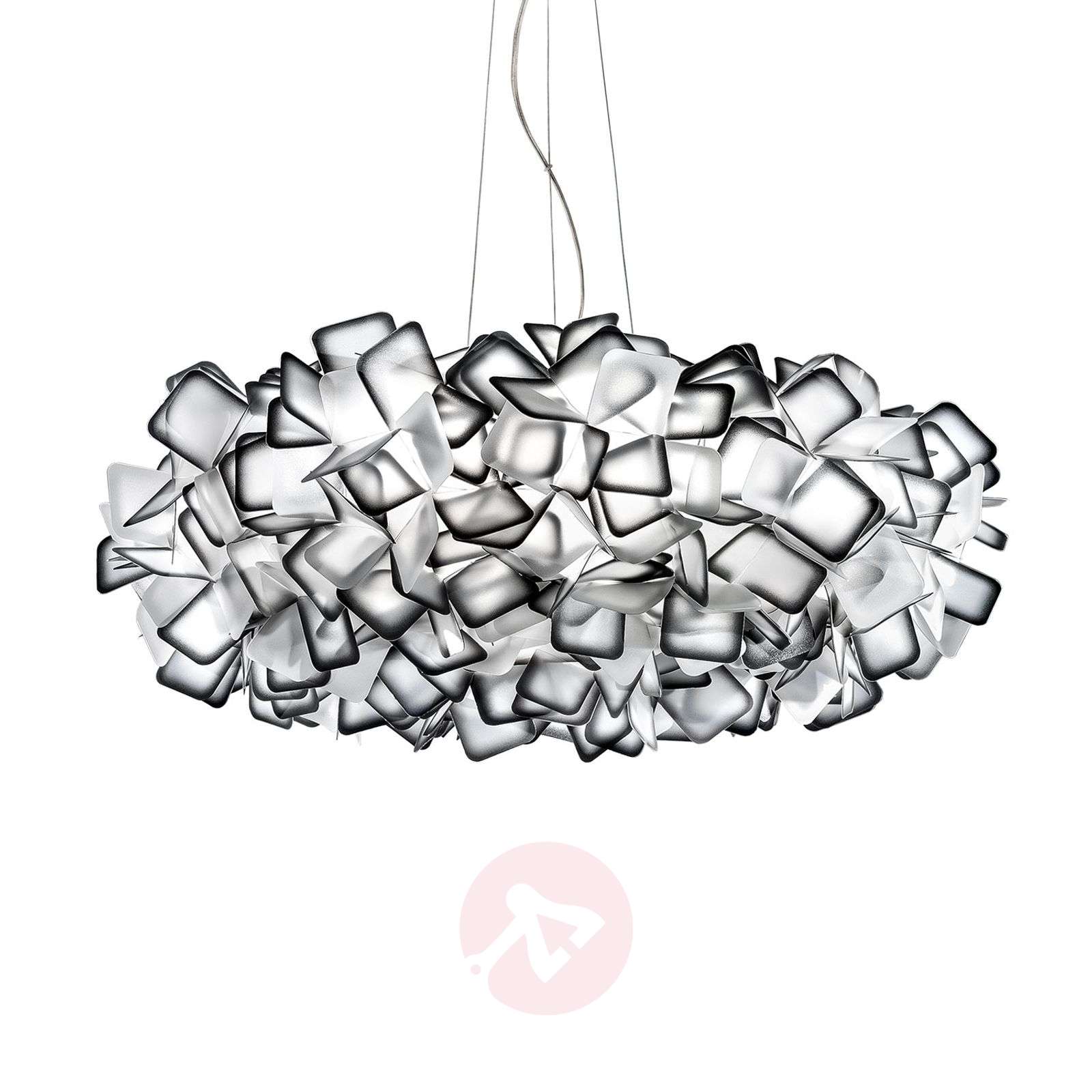 Designerska lampa wisząca Clizia - dzieło sztuki wykonane z przezroczystych liści Lampa wisząca Clizia składa się z okrągłego klosza utworzonego z niezliczonych, nieregularnie ułożonych liści z tworzywa sztucznego. W połączeniu z umieszczonymi wewnątrz lampami zapewniają one atmosferyczne efekty światła i cienia. Jest to celowa część koncepcji Adriano Rachele, który za pomocą Clizia pragnął stworzyć naturalną grę osłoniętego i załamanego światła słonecznego. W ten sposób lampa wisząca przypomina koronę drzewa lub chmurę oświetloną słońcem. Oprócz precyzyjnego, rzemieślniczego wykonania o nieskazitelnym wyglądzie i niezależnej koncepcji kreatywnej, włoski producent Slamp przykłada szczególną wagę do wykorzystania materiałów i technik opracowanych we własnym zakresie. W modelu Clizia zastosowano własne tworzywa sztuczne i uchwyt MagneticSystem® firmy Slamp. Klasa efektywności energetycznej: A++