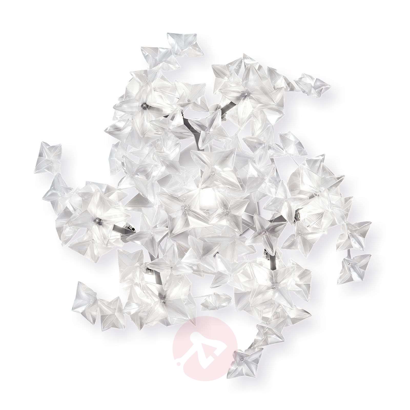Designerska lampa sufitowa Hanami - jak morze kwiatów Hanami to kompozycja materiałów syntetycznych o organicznym, naturalnym wyglądzie ogólnym. Lampa sufitowa LED służy jako element przyciągający wzrok oraz jako oświetlenie ogólne w urządzonych na wysokim poziomie prywatnych i publicznych obszarach pobytowych. Projektant Adriano Rachele został zainspirowany tradycyjnym japońskim festiwalem kwiatów wiśni (花見; Hanami), który jest poświęcony naturalnemu pięknu kwitnących wiśni. Tak, jak gałąź wiśni, lampę sufitową zdobi mnóstwo elementów kwiatopodobnych. Zostały one wykonane ręcznie z przezroczystego materiału Lentiflex® i załamują światło znajdujących się za nimi diod LED tworząc niezliczone wzory. Lampa sufitowa LED jest połączeniem inspirującego efektu świetlnego i wyglądu, kreatywnej koncepcji, rzemiosła i umiejętnego wykonania przy użyciu samodzielnie zaprojektowanych materiałów. Tak więc Hanami jest doskonałym przykładem, który ilustruje typowe cechy wysokiej jakości lamp producenta Slamp. - ściemnianie przez triak (min. 20 W) Klasa efektywności energetycznej: A+