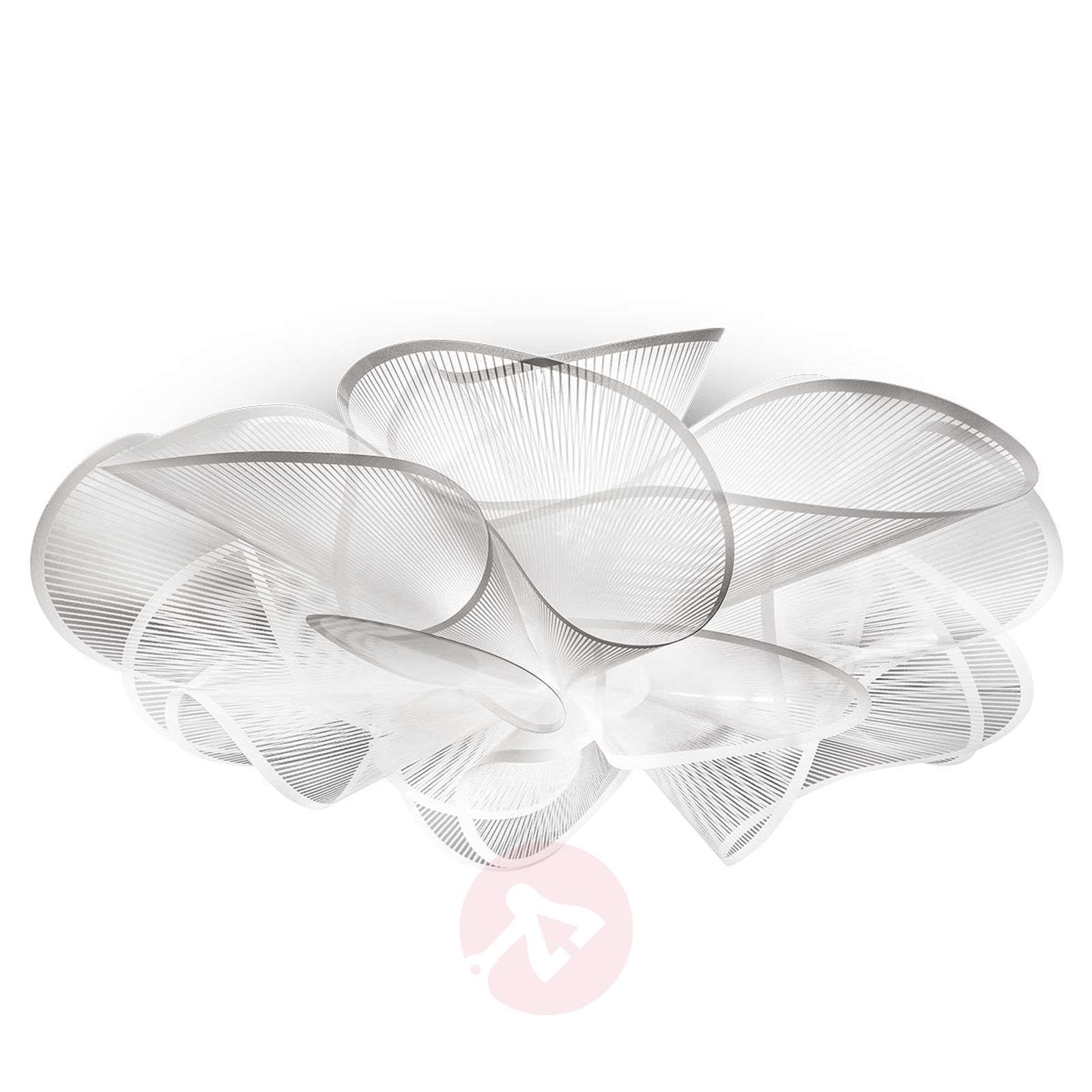 Lampa sufitowa La Belle Étoile – design by Adriano Rachele La Belle Étoile, czyli „piękna gwiazda” – tak designer Adriano Rachele nazwał swoją lampę. Ten biały przezroczysty klosz lampy emanuje gracja i lekkością, a jego kształt dzięki zakrzywionym i wygiętym elementom plastikowym przypomina pełne gracji ruchy tancerek. Były one również inspiracją dla Rachele, kiedy projektował La Belle Étoile. Design klosza można było stworzyć dzięki zastosowaniu Cristalflex®, materiału specjalnie opracowanego i opatentowanego przez firmę Slamp. To tworzywo sztuczne charakteryzuje się elastycznością i pozytywnym wpływem na efekt świetlny. Elastyczność obróbki materiału daje projektantom opraw dużą swobodę w procesie twórczym. La Belle Étoile to seria opraw włoskiej firmy Slamp, znanej z materiałów specjalnych i produkcji ręcznej. - możliwość ściemniania ściemniaczem z trybem odcinania fazy (nie zawartym w zestawie) Klasa efektywności energetycznej: A+