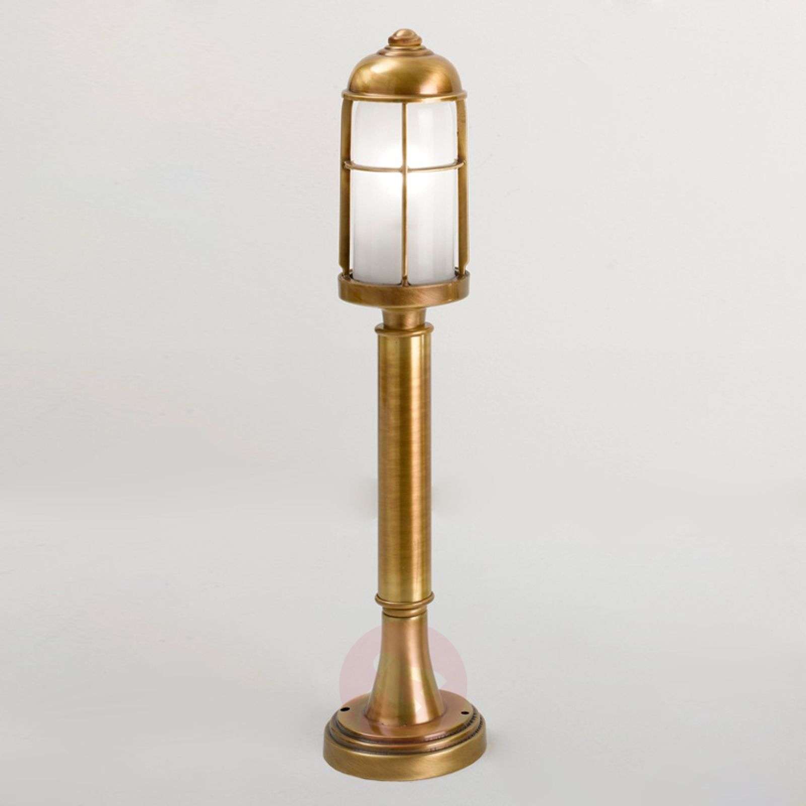 Made in Italy - mosiężny słupek ogrodowy Vicolo Vicolo to najwyższej klasy słupek ogrodowy, wytwarzany ręcznie we Włoszech. Słupek wykonany jest z mosiądzu i został wykonany ze szlachetną, satynowaną, szczotkowaną powierzchnią. Szkło lampy w metalowej siatce ochronnej jest satynowane od wewnątrz w białym kolorze i lśni z zewnątrz. Pozwala to na bardzo równomierne rozpraszanie nie oślepiającego światła żarówki E27 (nie dołączonej do zestawu) na wszystkie strony, dzięki czemu oświetlona jest rozległa powierzchnia. W celu energooszczędnego oświetlenia obszaru zewnętrznego, zamiast żarówki tradycyjnej do 60 W można zastosować żarówkę energooszczędną lub - najbardziej wydajny wariant - nowoczesną żarówkę LED. Klasa efektywności energetycznej: A++