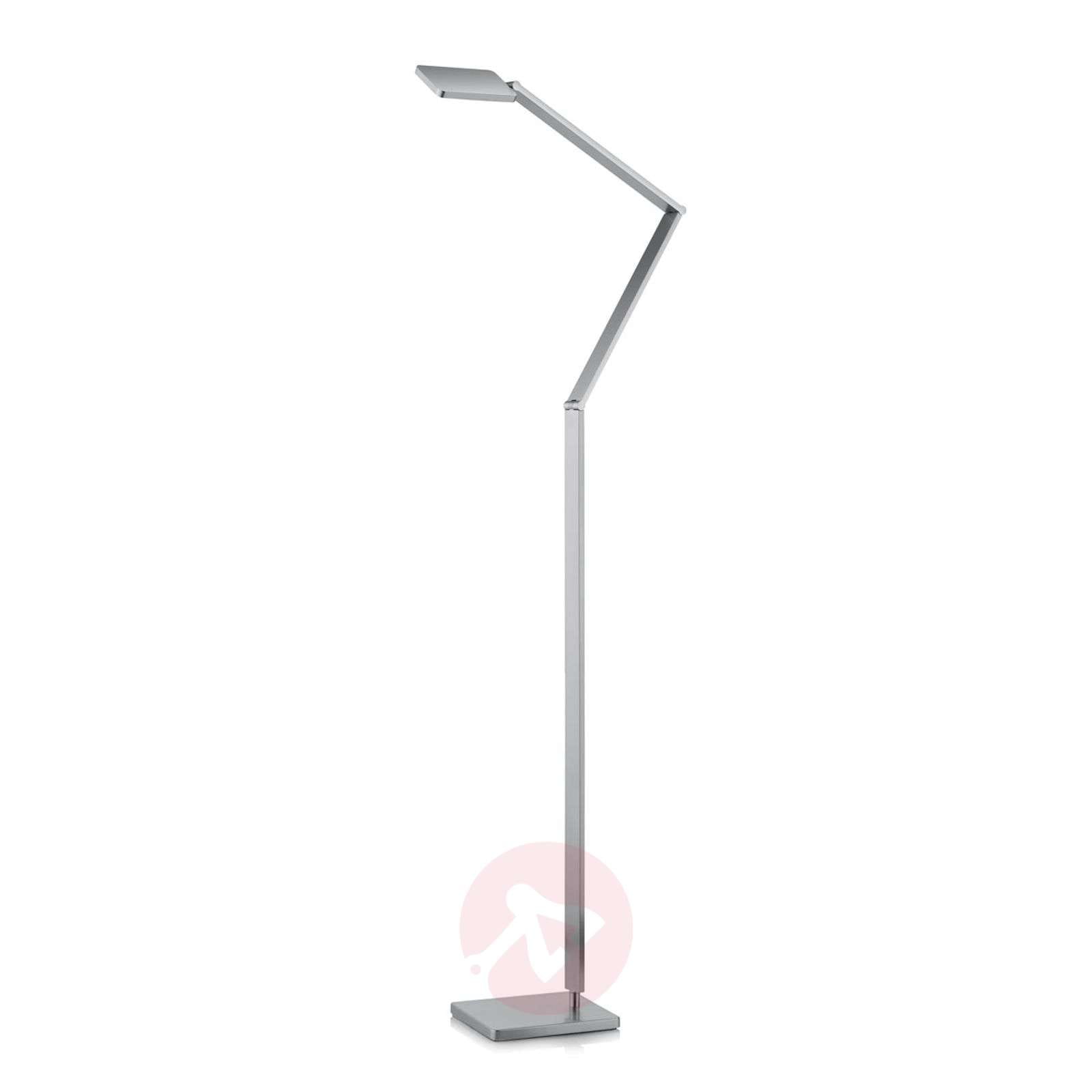 Duża lampa stojąca LED Linus z ramieniem przegubowym, z możliwością podwójnego odchylania Ta lampa stojąca Linus ma wysoką stopę, na której znajdują się dwa ramiona, połączone przegubami. Stopa, ramiona przegubowe i klosz wykonane są z metalu i mają prosty, purystyczny design. Linus zasilana jest mocną diodą LED. Zapewnia ona miłe dla oka, ciepłobiałe światło (2 900 K), mające natężenie 890 lumenów i idealnie nadaje się jako lampka do czytania. Jasność można dobrać w zależności od potrzeb, korzystając z wbudowanego ściemniacza w formie przycisku. Klasa efektywności energetycznej: A+