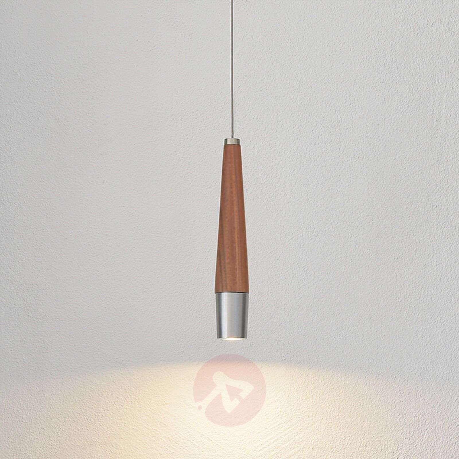 Z elementem z naturalnego drewna – ściemniana lampa wisząca LED Conico Lampa wisząca LED Conico udowadnia, że całkowicie kontrastujące materiały idealnie do siebie pasują. Ta smukła lampa wisząca składa się z korpusu z litego drewna orzechowego i ma w sobie rustykalną nutę. Z drugiej strony, korpus ten uzupełniony jest od góry i od dołu o elementy metalowe w kolorze matowanego niklu, stanowiące nowoczesny komponent tej lampy. Obydwa materiały doskonale się uzupełniają i tworzą obiekt oświetleniowy, który promienieje czystą elegancją. Możliwości i miejsca zastosowania Conico są bardzo zróżnicowane. Conico wszędzie roztacza pełnię swego uroku i blask elegancji, niezależnie od tego, czy jest zawieszona nad blatem w domowej kuchni, czy w kawiarni, czy nawet w ciemnej niszy, którą światło tej lampy wiszącej umiejętnie podkreśla. W razie potrzeby można nawet ściemnić diody LED, dzięki czemu Conico będzie emitować bardziej rozproszone światło. Klasa efektywności energetycznej: A+