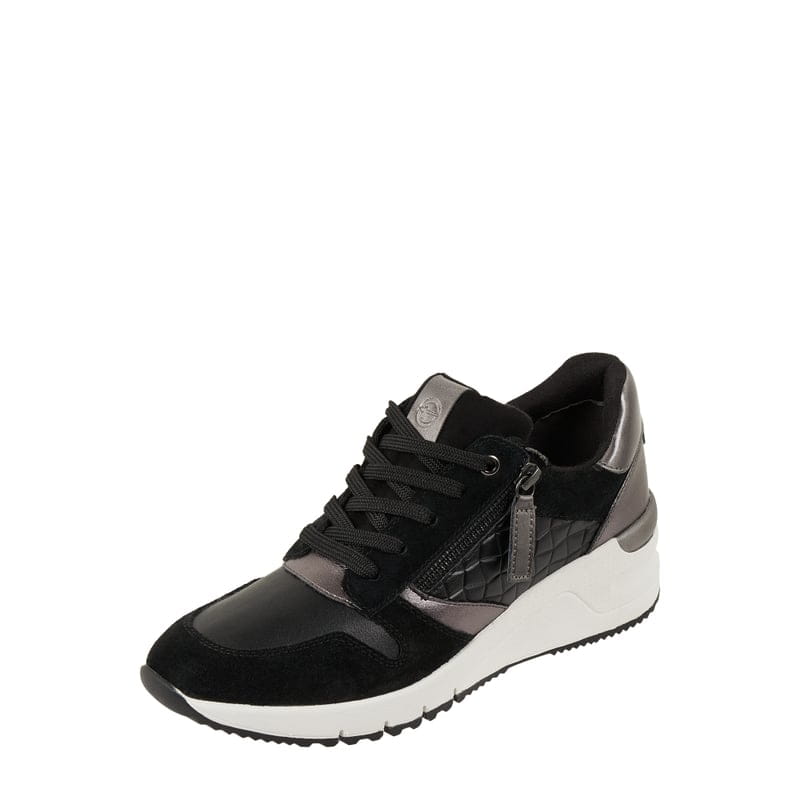 Sneakersy damskie Tamaris , Skóra i materiał tekstylny, Zaokrąglony czubek , Sznurowanie , Metaliczne detale , Gumowa podeszwa , Wbudowany koturn, Wyciągana wkładka , Wysokość podeszwy w rozmiarze 39: 4 cm