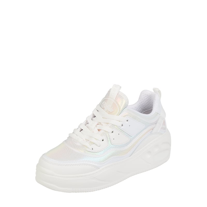 Sneakersy typu chunky damskie Buffalo, Błyszczący materiał , Zaokrąglony kształt, Sznurowanie, Obszycie w kontrastowym kolorze, Podeszwa na platformie, Wysokość platformy w rozmiarze 39: 5 cm