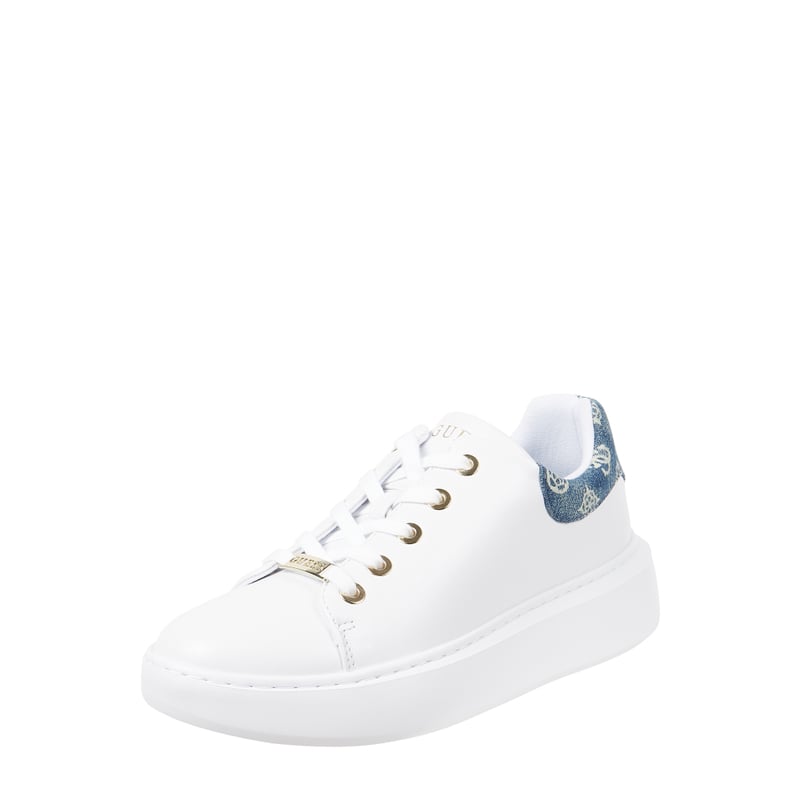 Sneakersy damskie GUESS , Materiał syntetyczny i tekstylny , Zaokrąglony czubek , Sznurowanie , Cholewka z imitacji denimu ze wzorem z logo, Gumowa podeszwa , Wyjmowana wkładka z tkaniny , Wysokość podeszwy w rozmiarze 39: 4 cm