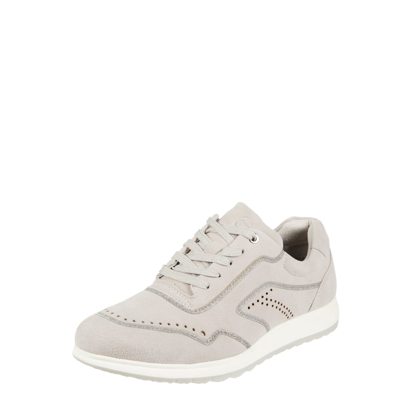 Sneakersy damskie Tamaris, Skóra welurowa, Zaokrąglony kształt, Sznurowanie, Obszycie w kontrastowym kolorze z błyszczącym efektem, Gumowa podeszwa, Wysokość podeszwy w rozmiarze 39: 2,5 cm