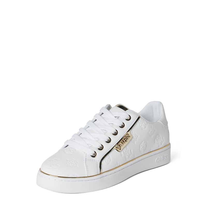 Sneakersy damskie GUESS , Materiał skóropodobny , Wyjmowana, wyściełana wkładka z tkaniny , Zaokrąglony czubek , Sznurowanie , Wytłoczone logo , Aplikacje z logo , Detale w kolorze złota , Gumowa podeszwa , Wkładka z tkaniny , Wysokość podeszwy w rozmiarze 39: 3 cm