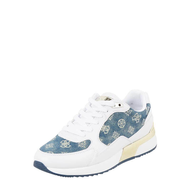 Sneakersy damskie GUESS , Tkanina, Zaokrąglony czubek , Sznurowanie , Tkanina stylizowana na denim, Wzór z logo , Obszycie w kontrastowym kolorze z imitacji skóry , Gumowa podeszwa , Wyjmowana wkładka z tkaniny , Wysokość podeszwy w rozmiarze 39: 3 cm