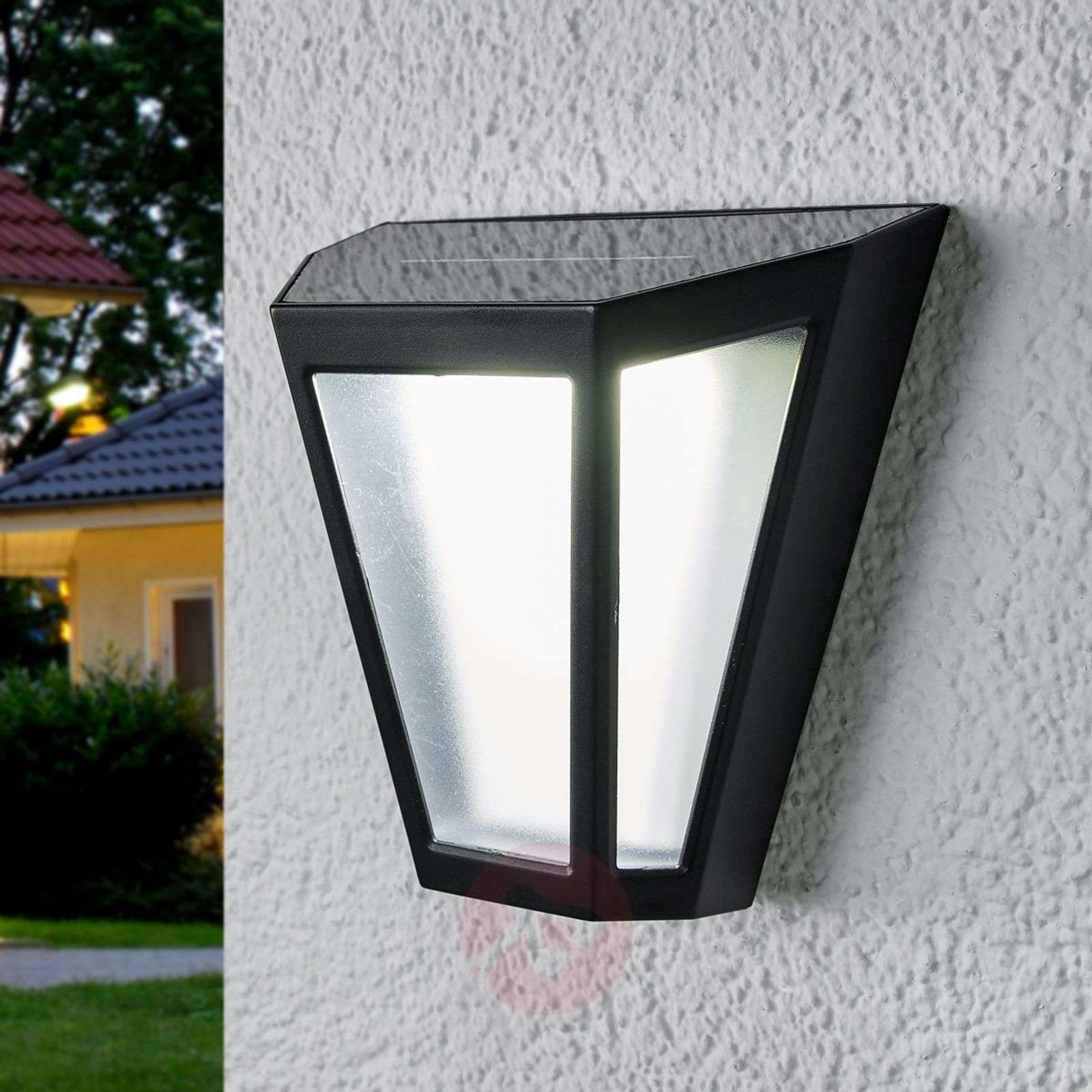 Kanciasty kinkiet solarny LED Yago Yago to kinkiet solarny z tworzywa sztucznego, działający w technologii LED. Do uruchomienia nie jest wymagane podłączenie do prądu, trzeba tylko pamiętać, aby panel solarny znajdujący się w górnej części lampy miał dostęp do odpowiedniej ilości światła słonecznego. Białe wkłady z tworzywa sztucznego zapewniają miękkie, równomierne światło, które umożliwia dobrą orientację po zapadnięciu zmroku. Klasa efektywności energetycznej: A+