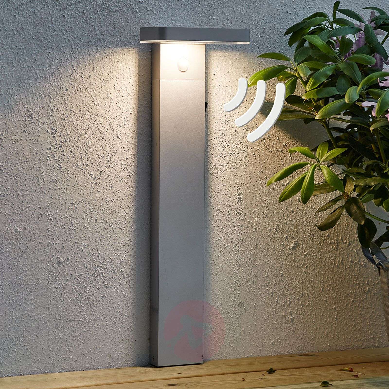 Zasilany energią solarną słupek ogrodowy LED Malta wraz z czujnikiem ruchu i funkcją timera Nowoczesny słupek ogrodowy LED Malta bezpiecznie i wydajnie oświetla ścieżki wokół domu, ponieważ jest zasilany energią solarną i dlatego jest obsługiwany praktycznie za darmo. W górnej części płaskiej głowicy lampy znajduje się moduł solarny, który w ciągu dnia ładuje zintegrowany akumulator prądem, dzięki czemu dioda LED może świecić w nocy. Dioda LED emituje światło o barwie ciepłej bieli o natężeniu około 200 lumenów, gdy tylko czujnik ruchu wykryje ruch. Szczególnie nadaje się do oświetlania ścieżek ogrodowych lub wejść. Dane techniczne czujnika ruchu: - zasięg: 8 m - kąt wykrywania 90° - ustawienie czasu: 40 s Klasa efektywności energetycznej: A+