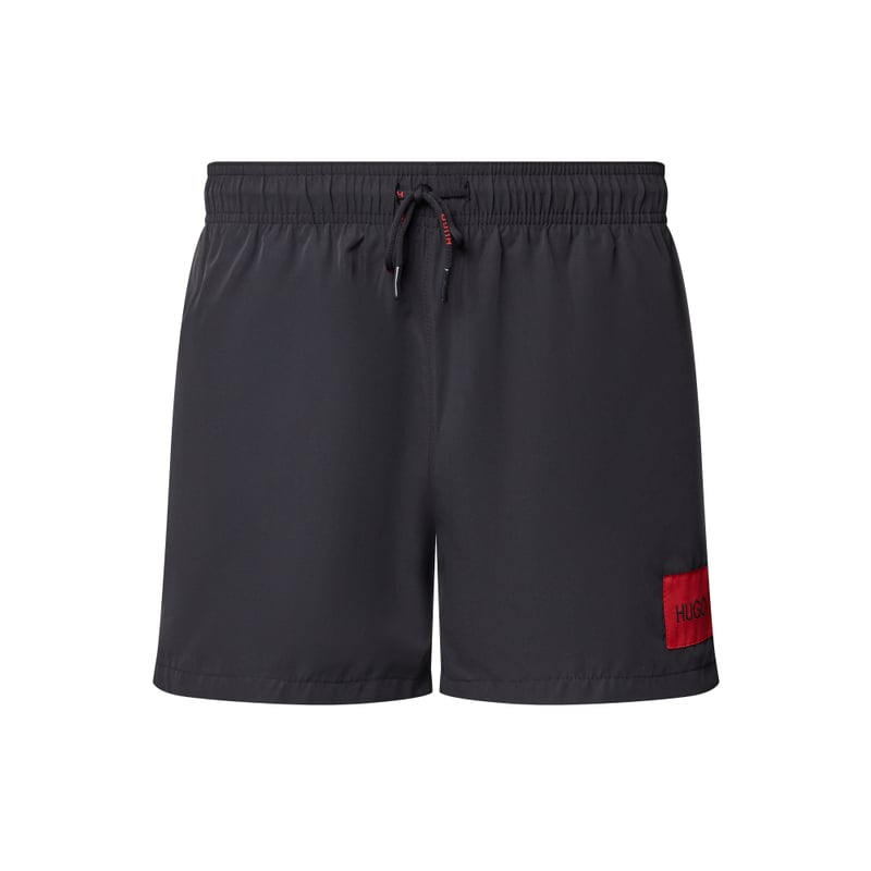Spodenki kąpielowe męskie HUGO, Wytrzymały materiał, Szorty, Model ‘SANSIBAR’, Kolory uni, Elastyczny pas z tunelem, Boczne wpuszczane kieszenie, Kieszeń tylna zapinana na rzep, Naszywka z logo, Podszewka z siateczki