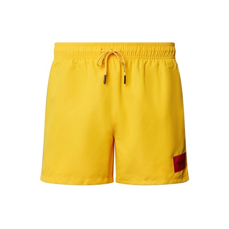 Spodenki kąpielowe męskie HUGO, Wytrzymały materiał, Szorty, Model ‘SANSIBAR’, Kolory uni, Elastyczny pas z tunelem, Boczne wpuszczane kieszenie, Kieszeń tylna zapinana na rzep, Naszywka z logo, Podszewka z siateczki