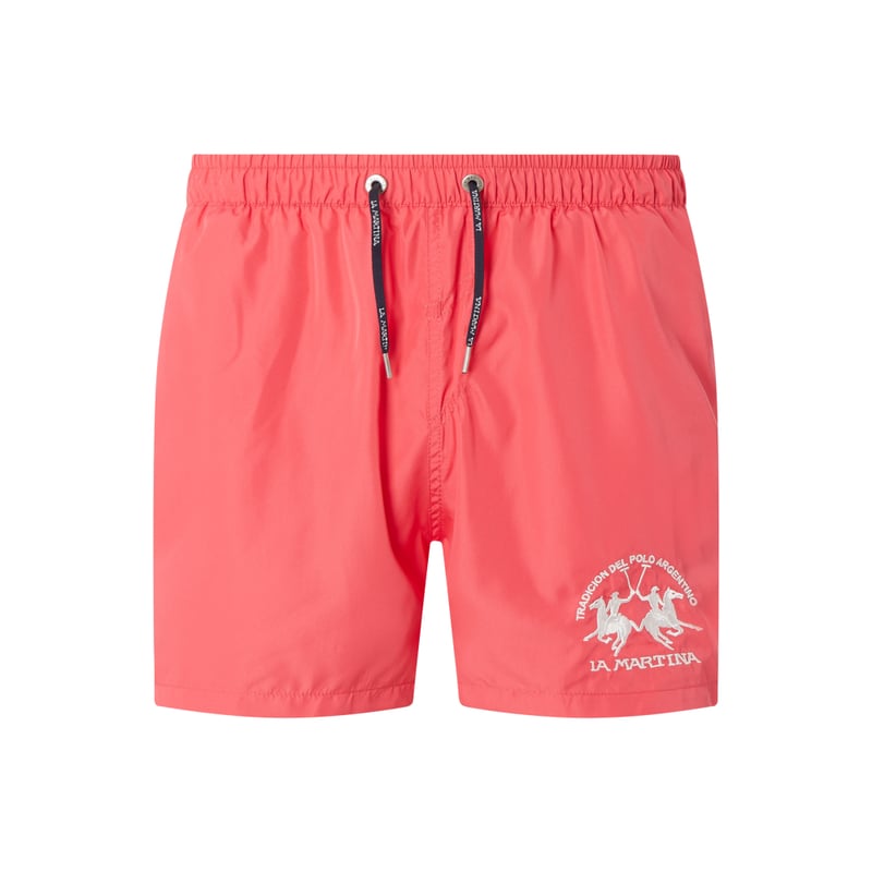 Spodenki kąpielowe męskie La Martina, Lekki materiał , Szorty , Elastyczny pas z tunelem, Boczne wpuszczane kieszenie, Kieszeń z tyłu z patką na rzep, Wyhaftowane logo , Podszewka z siateczki , W zestawie z saszetką