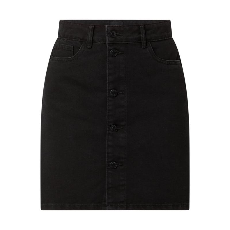Spódnica jeansowa damska VERO MODA, Czysta bawełna , Krój rozkloszowany , Listwa guzikowa , 5 kieszeni , Szwy w kontrastowym kolorze , Długość całkowita w rozmiarze S: 43 cm, Szerokość w pasie w rozmiarze S: 72 cm