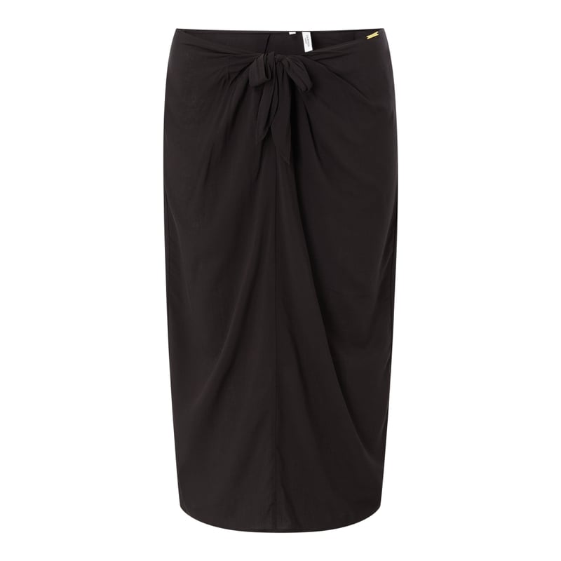 Spódnica kopertowa damska Calvin Klein Swimwear, Czysta wiskoza, Prosty krój, Sznurowanie, Długość całkowita w rozmiarze S: 67 cm