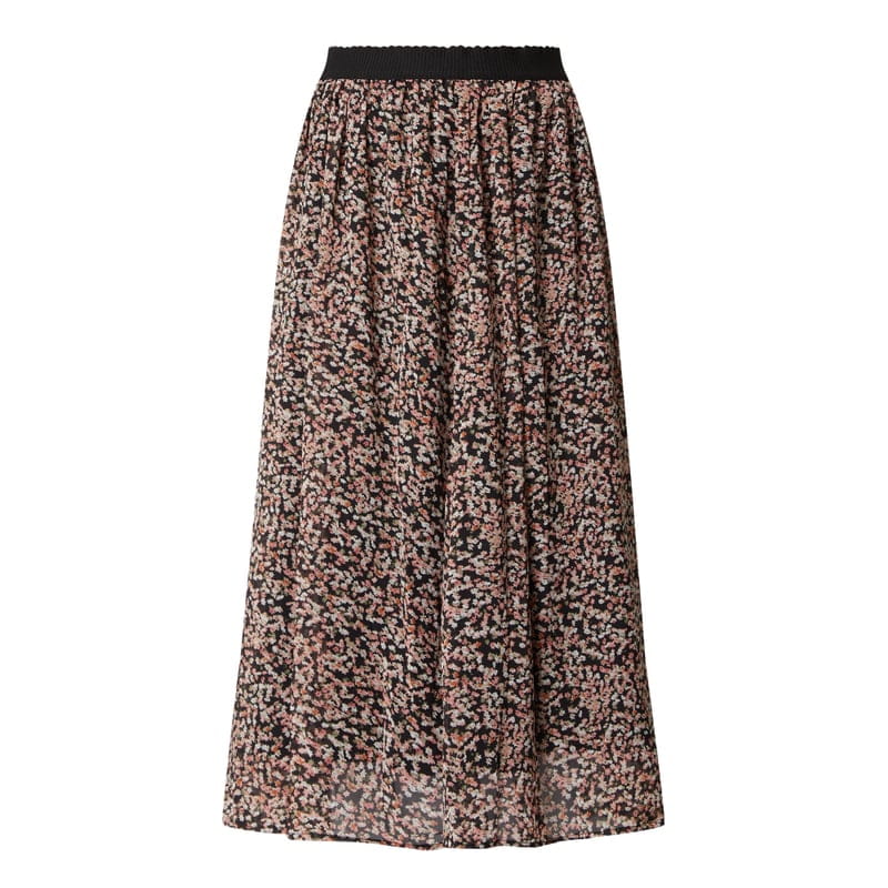 Spódnica damska soyaconcept, Poliester z recyklingu , Krój rozkloszowany , Szyfon , Długość midi , Wzór w drobne kwiaty , Elastyczny pas , Nieprzejrzysta halka , Długość całkowita w rozmiarze S: 84 cm