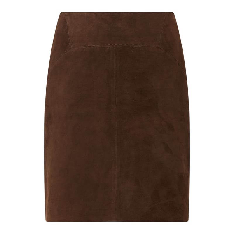 Spódnica mini damska MORE & MORE, Naturalna skóra welurowa , Lekko rozkloszowany krój , Szwy działowe , Wszyty zamek błyskawiczny z tyłu , Lekka halka, Długość całkowita w rozmiarze 36: 49 cm, Szerokość w pasie w rozmiarze 36: 76 cm