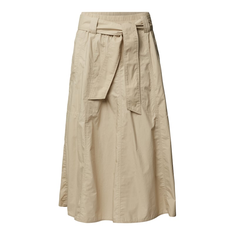 Spódnica damska Marc Cain, Czysta bawełna, Krój rozkloszowany, Elastyczny pas, Tasiemka w talii, Boczne wpuszczane kieszenie, Szwy działowe, Szerokość w pasie w rozmiarze 36: 37 cm, Długość całkowita w rozmiarze 36: 80 cm