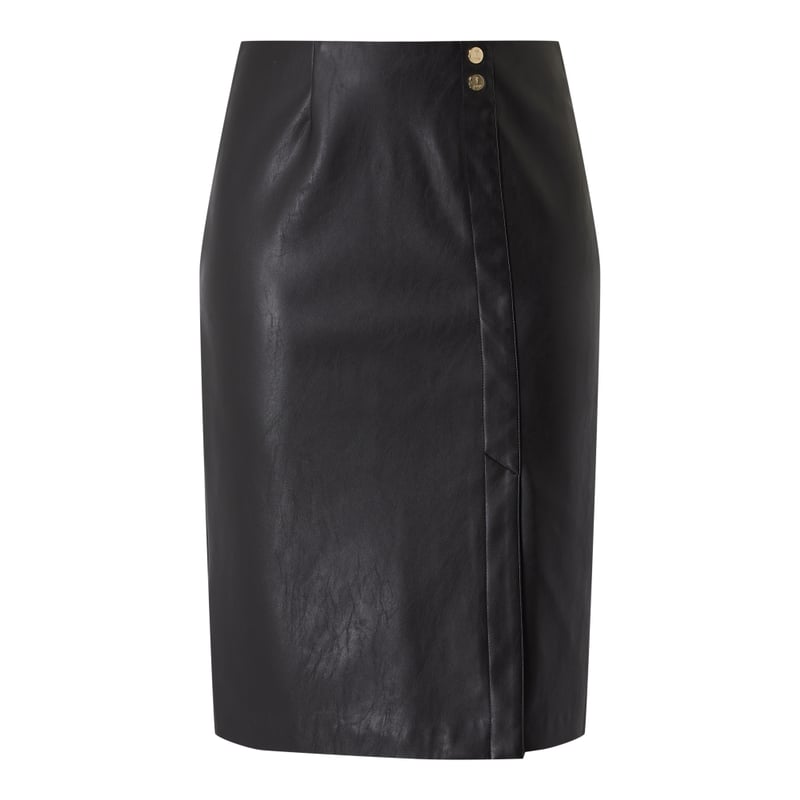 Spódnica damska JOOP!, Materiał skóropodobny, Dopasowany krój, Ozdobne guziki, Wszyty zamek błyskawiczny , Długość całkowita w rozmiarze 36: 63 cm, Szerokość w pasie w rozmiarze 36: 74 cm