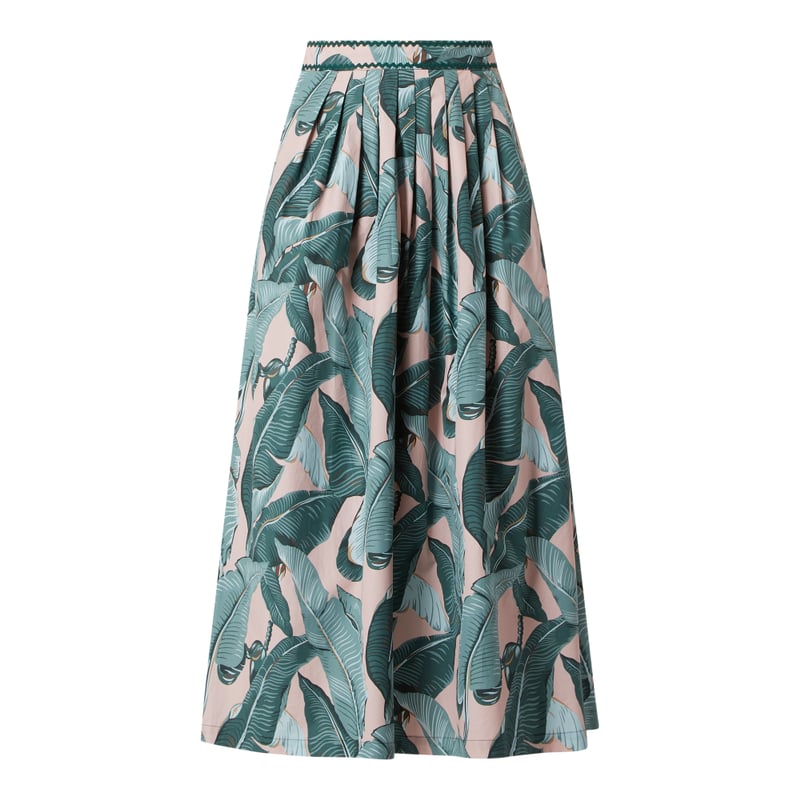 Spódnica damska Weekend Max Mara, Czysta bawełna, Krój rozkloszowany, Wzór na całej powierzchni, Kryty zamek błyskawiczny z boku, Boczne wpuszczane kieszenie, Plisy, Długość całkowita w rozmiarze 36: 95 cm
