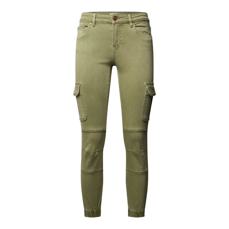 Spodnie cargo damskie ONLY , Mieszanka bawełny i elastanu , Prosty krój , Jeans , Zapięcie na guzik i zamek błyskawiczny , Wpuszczane kieszenie , Kieszonka na monety , Kieszenie cargo , Kieszenie z tyłu , Elastyczne zakończenia nogawek , Długość wewnętrzna nogawki w rozmiarze 36/32: 70 cm, Szerokość w pasie w rozmiarze 36/32: 70 cm