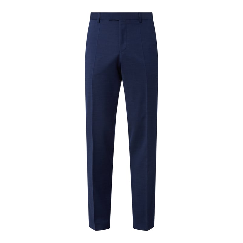 Spodnie do garnituru męskie BOSS, Mieszanka żywej wełny z dodatkiem streczu, Krój regular fit , Delikatny tkany wzór, Zapięcie na 2 haftki i zamek błyskawiczny, Wpuszczane kieszenie w stylu francuskim, Tylne kieszenie z wypustką zapinane na guzik, Kanty, Długość wewnętrzna nogawki w rozmiarze 50: 80 cm, Szerokość w pasie w rozmiarze 50: 78 cm