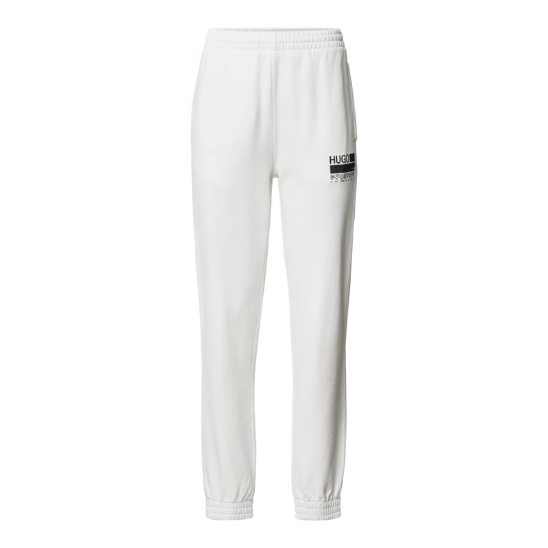 Spodnie dresowe damskie HUGO, Bawełna z dodatkiem materiału z recyklingu, Luźny krój, Elastyczny pas z tunelem, Boczne wpuszczane kieszenie, Nadruk z logo, Elastyczne zakończenia nogawek
