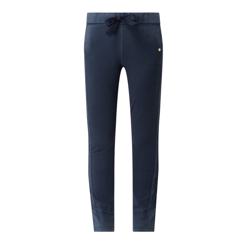 Spodnie dresowe damskie JOOP!, Mieszanka bawełny i elastanu, Wąski krój, Elastyczny pas z tunelem , Boczne wpuszczane kieszenie , Odznaczające się zakończenia nogawek z rozcięciem, Logo, Długość wewnętrzna nogawki w rozmiarze 36: 73,5 cm
