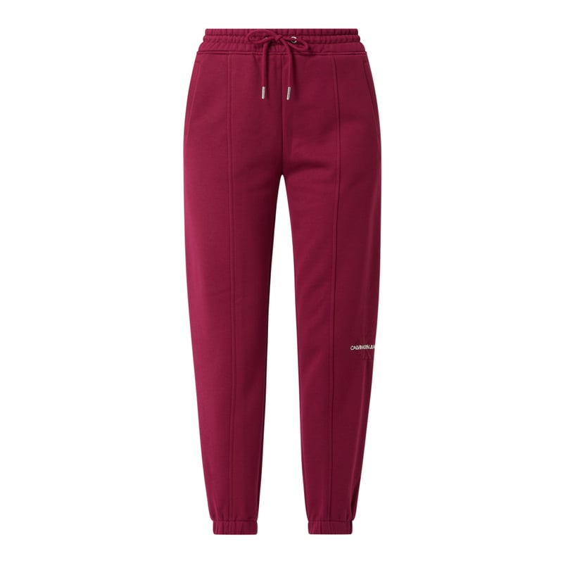 Spodnie dresowe damskie Calvin Klein Jeans, Mieszanka bawełny , Luźny krój , Elastyczny pas z tunelem, Boczne wpuszczane kieszenie, Elastyczne zakończenia nogawek , Szwy działowe , Długość wewnętrzna nogawki w rozmiarze S: 71 cm